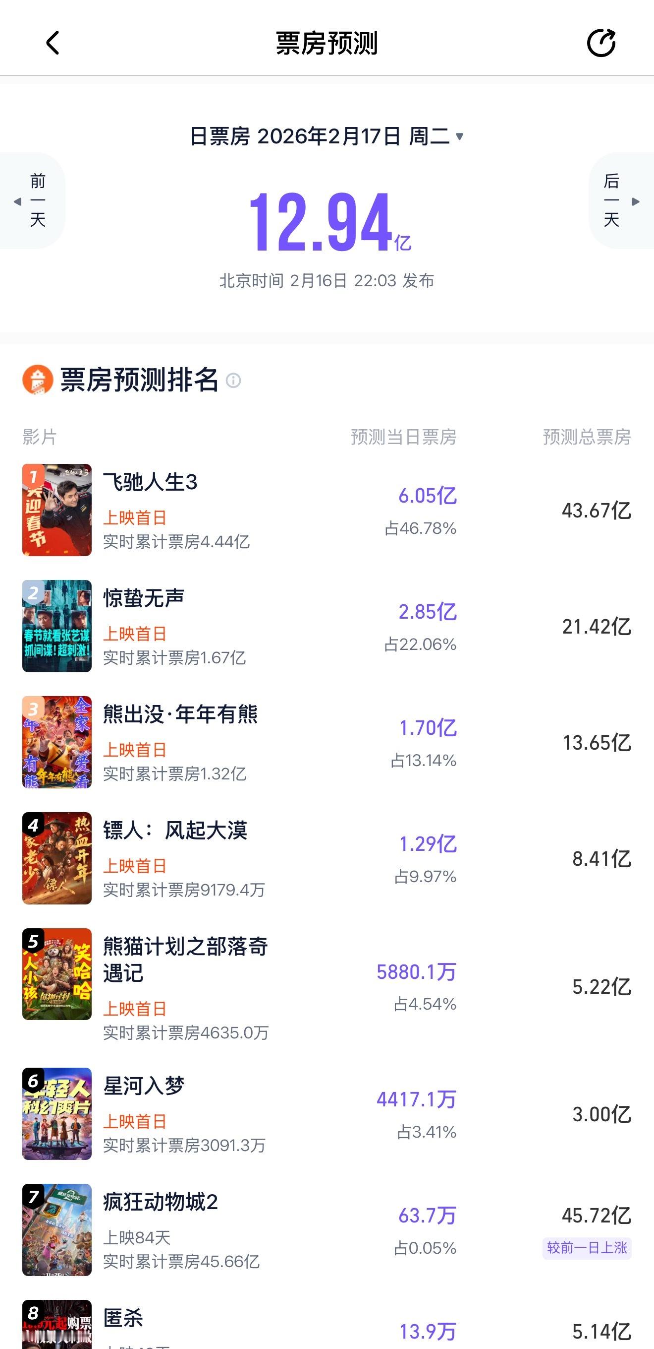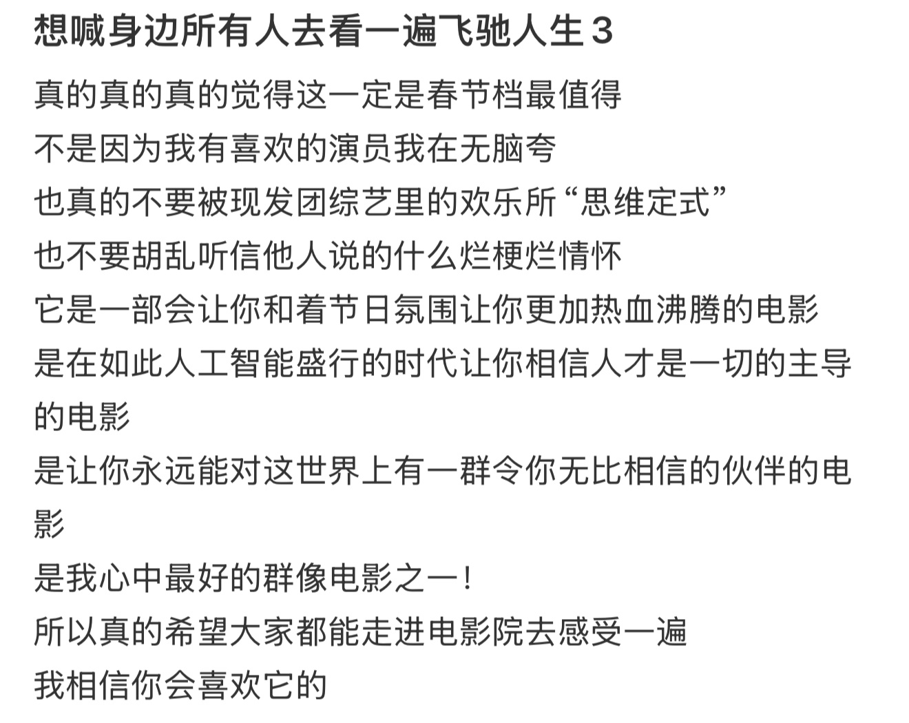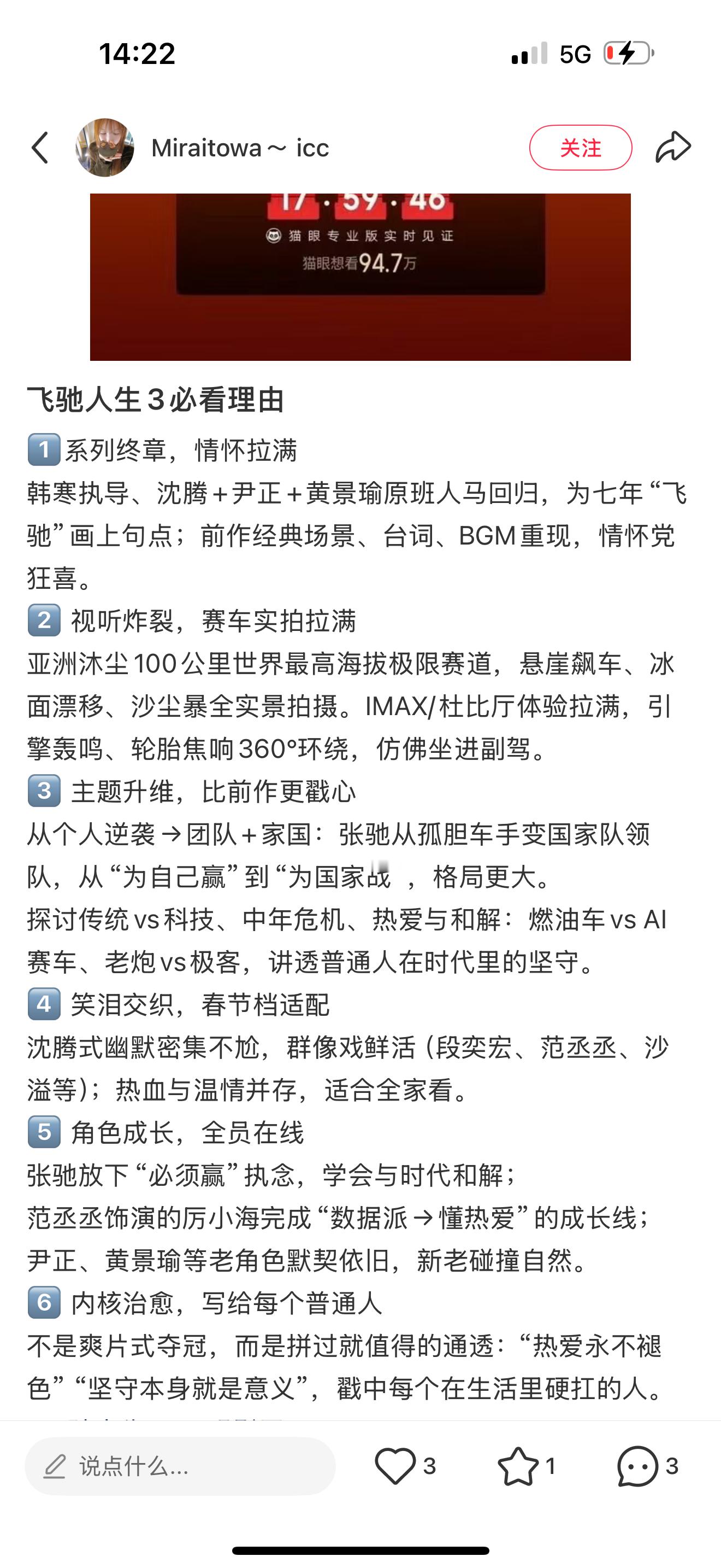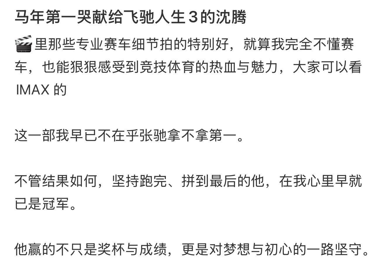 飞驰人生3的口碑飞驰人生3真实观众的评价很好哈,首日预测票房上涨,是唯一一部上座率高于排片的电影,有吸干大盘的趋势就是口碑好最佳说明。