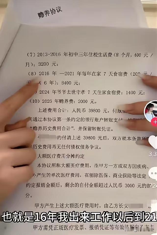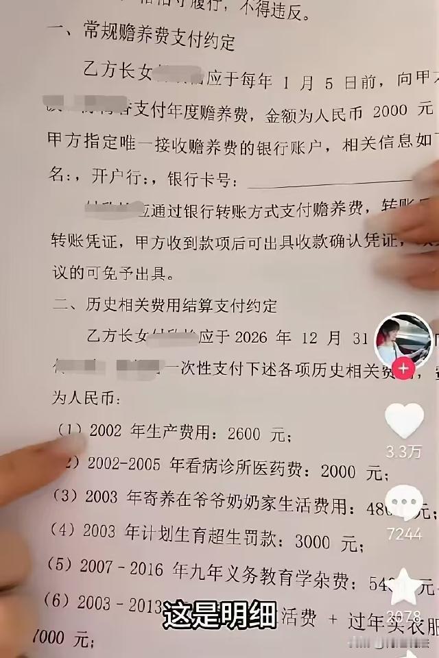 上海,24岁女孩从小就是留守儿童,初中毕业就去上海打工,年前因拒绝替弟弟出20万彩礼,除夕前一天收到父母的起诉书。女孩说,父母给她算的账,从小到大她一共花了他们39800元,包括超生罚款和过年回家每天200块钱的伙食费,以及爷爷离世回家守孝7天,每天200元的伙食费。 2月15日,一个名叫付欣怡的24岁女孩发了一条视频,讲述了发生在她头上的事。 据付欣怡讲,她是家里的老大,父母生了她后还想要个男孩,就这样她的弟弟出生了。 付欣怡从小就是留守儿童,父母把她丢在老家由爷爷奶奶照看,她刚14岁,就离开家出去打工了。 付欣怡慢慢长大了,她意识到了父母不爱她的事实,回家次数越来越少。 但打工期间,包括后来她结婚后,付欣怡也一直没有不管父母,时不时就会给他们一些钱花。 6年前,爷爷奶奶不在了,付欣怡再也没有回家过,包括结婚生孩子,也没告诉过父母,父母也从来没有关心过问过她。 之前,父母突然想起了她这个女儿,还说想看看她的老公和孩子长什么样,付欣怡将老公孩子的照片发给他们看。 可是,付欣怡的的爸妈突然就变脸了,说她弟弟谈了女朋友想结婚,让她替弟弟出20万彩礼。 付欣怡早就意识到了父母的偏心,现在又有了自己的小家,怎么可能愿意给弟弟出彩礼? 她刚一拒绝,父亲就威胁她说,如果她不拿这笔钱,就去起诉她,还要到她的住处贴她和老公孩子的大字报,让她一家都没法做人。 付欣怡又气愤又难过,坚决地告诉父母,别说她没有钱,就算有,她也不会出。 谁知道,除夕前一天,付欣怡接到了传票。 付欣怡的父母列出了一份养育清单,上面写着她2002年出生,生产费2600块钱,看病200块钱,在爷爷奶奶家的生活费4800元,学杂费7000元等等,加起来一共39800元,凑个整算4万。 让人瞠目结舌的是,这些费用里还包括付欣怡辍学后的费用,产生这些费用,是因为她过年期间在家吃住,父母给她按照200元一天计算。 更让人无语的是,付欣怡爷爷离世的时候,付欣怡回家奔丧,父母也给她按照200元一天算了费用。 如果说这些还有一定依据的话,剩下这一项费用的产生就让人更加不能接受了。 原来,父母给付欣怡算的养育清单里,还有一项3000元的超生罚款。 付欣怡是家里的老大,怎么会超生呢?就算超生,也应该是她弟弟产生,根本算不到付欣怡的头上。 付欣怡的父母是这样解释的,她的弟弟不用罚款,付欣怡才是被罚款的那一个。 有人猜测,应该是父母生下付欣怡后,就没有给她上户口,事后补上的,所以才说她是被罚款的那个。 付欣怡非常气愤,如果这样算的话,她出来打工后,一直陆陆续续在给家里钱,前前后后也给了三万多,就算要补父母的养育费,顶多再补个一万来块钱。 但是她的父母说,之前是她主动给的不算,现在要重新给,不仅要重新给,还要补5倍,算下来就是20万。 付欣怡的父母要求付欣怡给弟弟出彩礼,还主张付欣怡5倍返还养育费,是否有法律依据?付欣怡是否需要归还? 首先,付欣怡的父母让她出弟弟的彩礼,没有任何法律依据。 在法律层面,没有任何法律规定,姐姐对弟弟的婚姻有资助义务。 婚姻是弟弟与他伴侣之间的事,彩礼的承担主体通常是男方家庭,姐姐并没有法定责任去为弟弟的彩礼买单。 付欣怡有自己的生活和家庭,是否给予帮助属于道德层面的自愿行为,而非法律强制要求。 其次,父母让付欣怡归还养育费用,这在法律上也站不住脚。 《民法典》规定,父母有抚养、教育和保护未成年子女的权利和义务。 父母虽对付欣怡的抚养是履行法定义务,不存在让子女偿还的说法,他们列出的养育清单中,很多费用计算也不合理。 比如过年在家吃住按200元一天算,爷爷离世回家奔丧也计费,还有将超生罚款算到付欣怡头上,这些都缺乏法律依据。 有人说,这些费用就算不合法,万一付欣怡的父母要求她给赡养费,付欣怡不还是一样要出钱吗? 子女有赡养父母的义务,但是这个义务并非无限制的。 一般情况下,父母向子女主张赡养费,需要同时满足两个条件,一是父母缺乏劳动能力或者生活困难,二是子女不履行赡养义务。 所以,即便付欣怡的父母让她付赡养费,只要他们还有劳动能力,没有生活困难,付欣怡就可以拒绝。