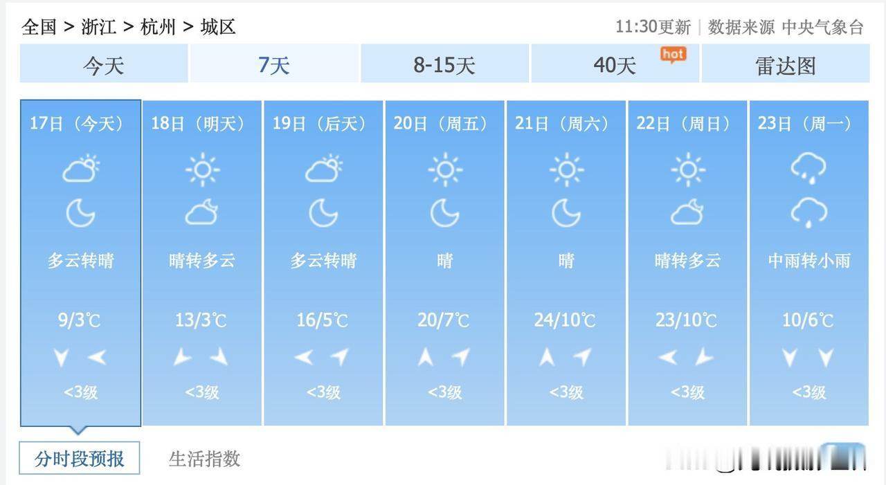 我的个天啊!杭州市,好天气即将迎来大反转!虽然2月17日到22日的杭州市,每天有