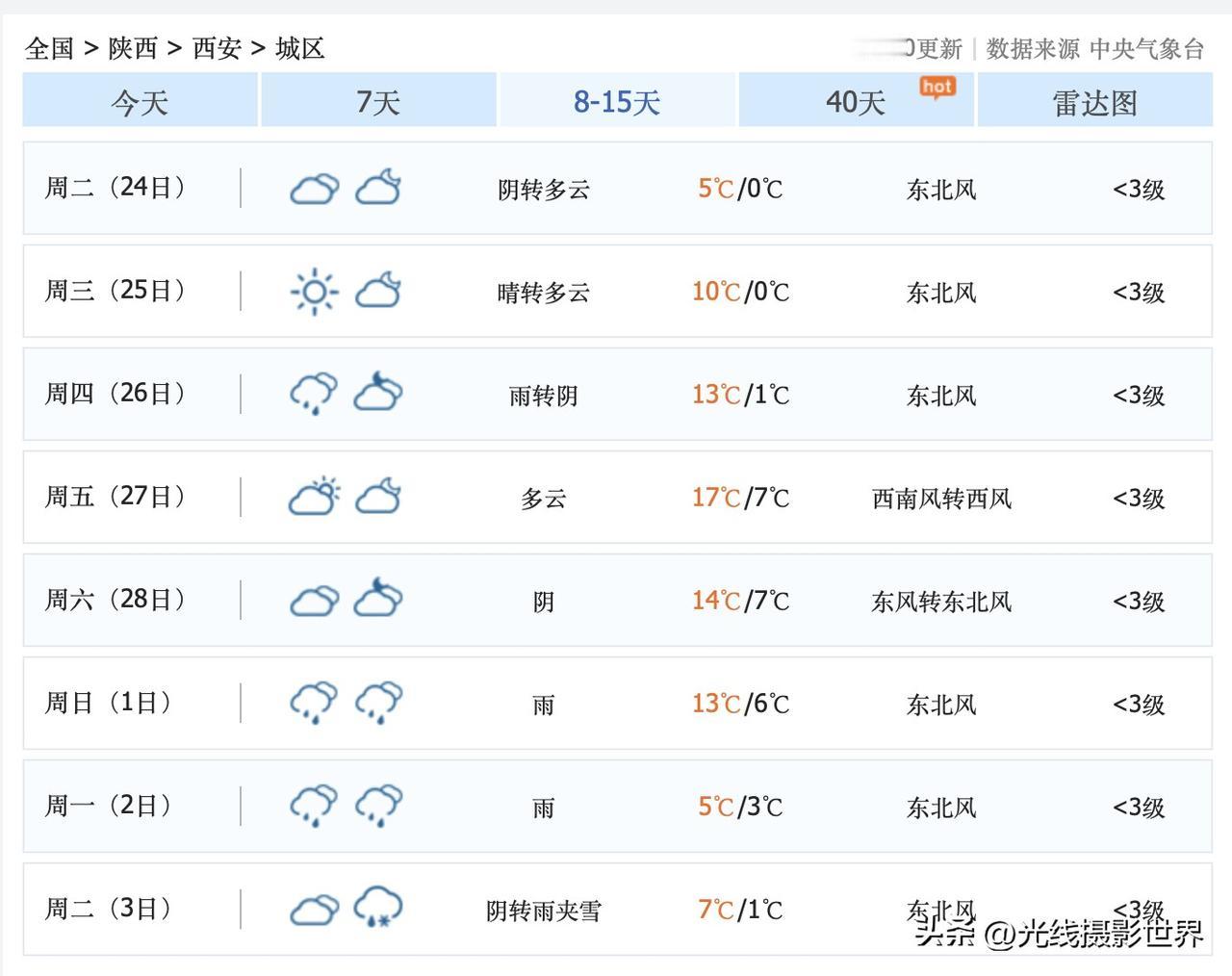 哎!陕西省西安市,3个坏消息!2月17日,大年初一,西安空气中度污染!超级计算机认为,2月18日到21日的西安空气质量也堪忧,因为每天有太阳,因为气温快速回暖至21度……所以,大年初二到初五,西安空气质量可能持续雾霾中…… 2月22日到23日,西安将会降雨降温,断崖式大降温,超强冷空气速冻,哎……不过,好处是,经过冷空气的速冻和降雨,西安空气质量有望恢复良好! 3月2日和3日,西安市可能会再次遭受超强冷空气的迅猛冷冻…… 3月2日,西安降雨,气温跌至3-5度。 …… 3月3日,西安可能会有雨夹雪…… 哎呀!未来15天的天气预报,西安市……总体来说,感觉不太妙。