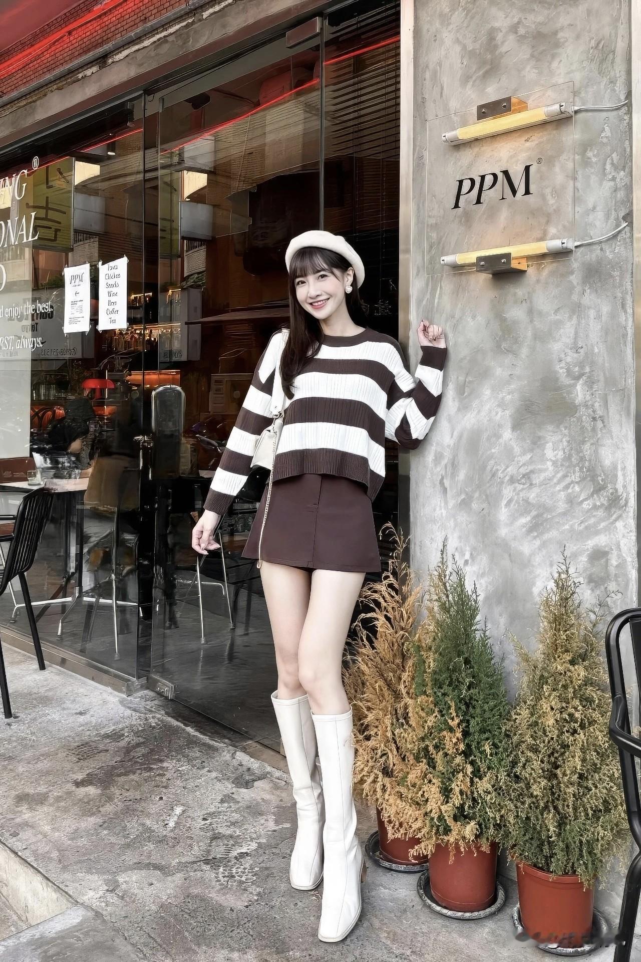 试了下“棕+白”的配色,真的被显白效果惊到了! 棕色条纹毛衣搭同色系裙裤,本来担心会有点沉闷,但配了双白色长靴,整个人瞬间亮了起来。朋友说今天看起来气色特别好,问我是不是换粉底了😂 其实穿搭就是这么神奇,棕色的沉稳被白色一中和,既温柔又清爽,还特别显白。以前总不敢尝试大地色,怕显老气,没想到搭对了居然这么耐看。 你们平时喜欢棕色系的搭配吗?一般会用什么颜色来配? 新年爱好打卡时尚穿搭 穿搭指南