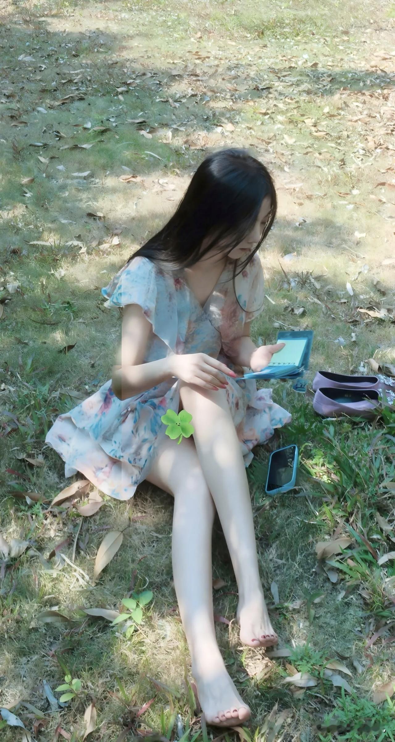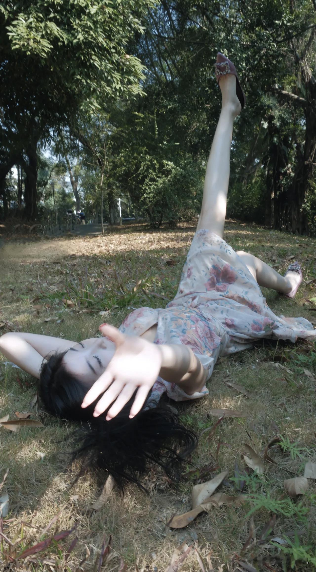 【下午四点的光,碎花裙和一双浅紫单鞋。】 下午四点的光,斜着从树叶缝里漏下来,草地上有落叶,还有一块一块的亮斑。 我找了个草地坐下,把脚伸直,脚尖对着光的方向。左手拎着那双浅紫色的单鞋,鞋面上有细细的亮饰,鞋跟就这么垂下来,一晃一晃的。右手抬起来,装作要拨头发的样子,其实是想让手腕的线条好看一点。 头低着,看地上那小块光斑。旁边草丛里,蓝绿色的小包露出一角。 阳光正好打在小腿上,一段一段的亮。草有点扎人,但顾不上那么多了。 这时候的光最温柔,不刺眼,把人的轮廓都勾得毛茸茸的。碎花裙的裙摆散在草地上,几片干叶沾在上面。 我没看镜头。这样最自然,就像一个人安安静静地坐了会儿,刚好有人路过,随手按了一张。 其实拍照就是这样,不用太使劲。找个舒服的姿势,让光落在该落的地方,剩下的交给下午四点的风。 晒图笔记大赛