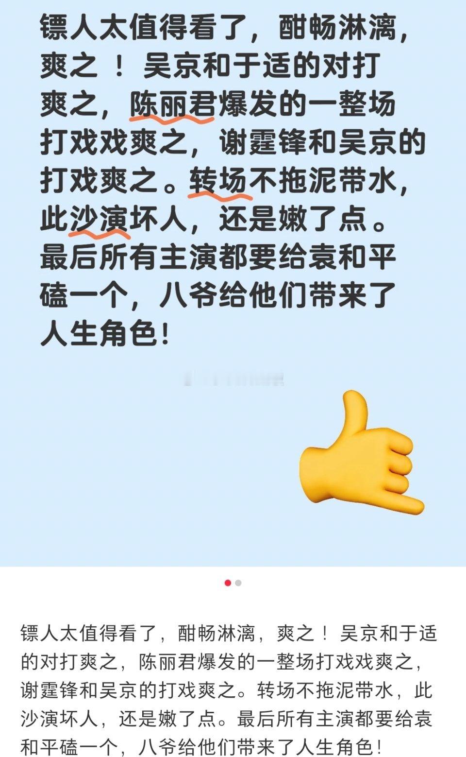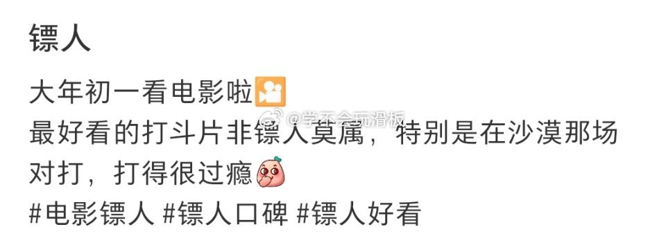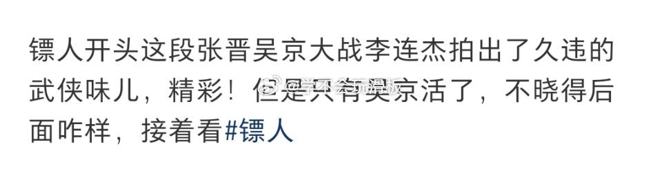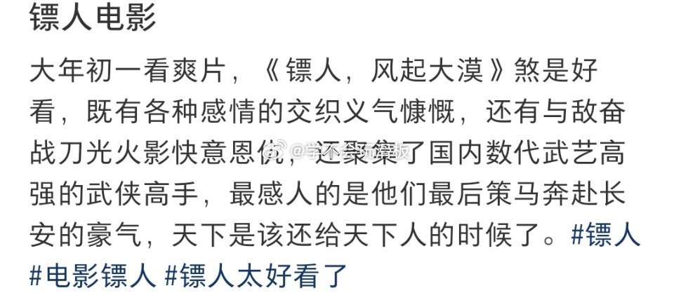 谁说武侠死了明明活蹦乱跳的《镖人》直接把武侠的荣光拉满了!根本不是空有外壳的伪武侠,刀马护镖闯西域的剧情有血有肉,恩怨情仇层层递进,连反派都有细腻的人物弧光。打戏更是全程高能,拳拳到肉行云流水,李连杰和吴京的客栈对决帅到失语,一招一式全是真功夫,看的肾上腺素狂飙!老戏骨坐镇压场,新生代演员也扛住了戏份,提前进组打磨动作、融入个人特色,新老传承的武侠味正到骨子里。这才是真正的中式武侠,热血又有质感,武侠从来都没死,只是在《镖人》里活成了最燃的样子!