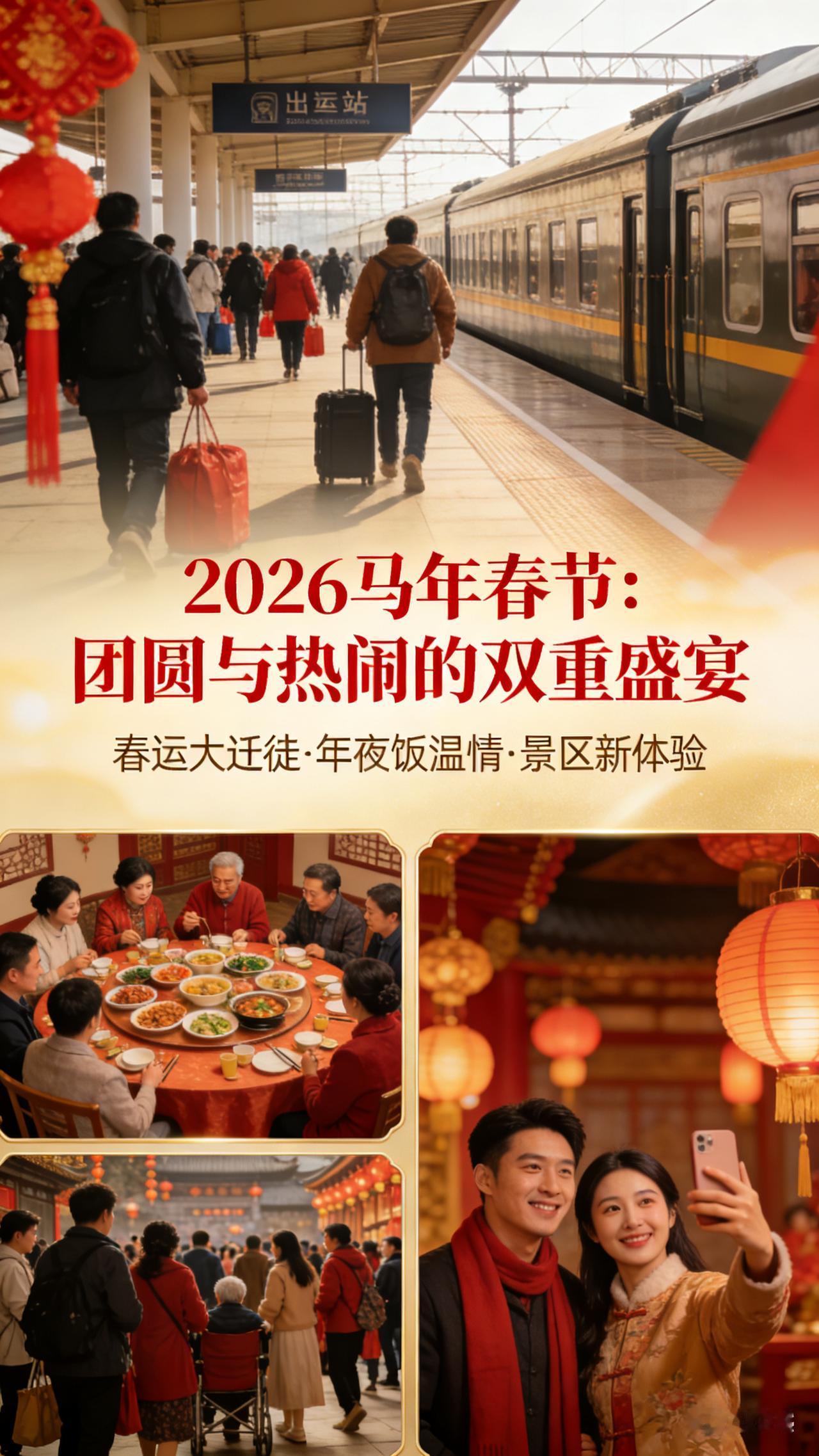 马年春节刷屏:流动的中国,藏着最动人的年味 2026马年春节,最长假期遇上全民团圆,春运、文旅、消费全线升温,成为全网最热话题。天南地北,有人风雪归家,有人自驾出游,有人反向团圆,9天长假让久违的年味彻底回归。 今年春节亮点十足:冰雪游与避寒游双向火爆,景区、商圈、民宿全线爆满;春晚机器人、非遗节目刷屏,科技与传统碰撞出新意;春节档票房走高,电影市场迎来开门红。更让人暖心的是,无论离家多远,一通电话、一顿年夜饭,就能把牵挂拉到眼前。 流动的背后,是烟火气的回归,是经济活力的释放,也是中国人刻在骨子里的团圆情结。这个春节,没有刻意煽情,只有真实的热闹与温暖。愿新的一年,山河无恙,人间皆安,家家团圆,万事顺遂。