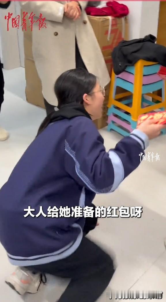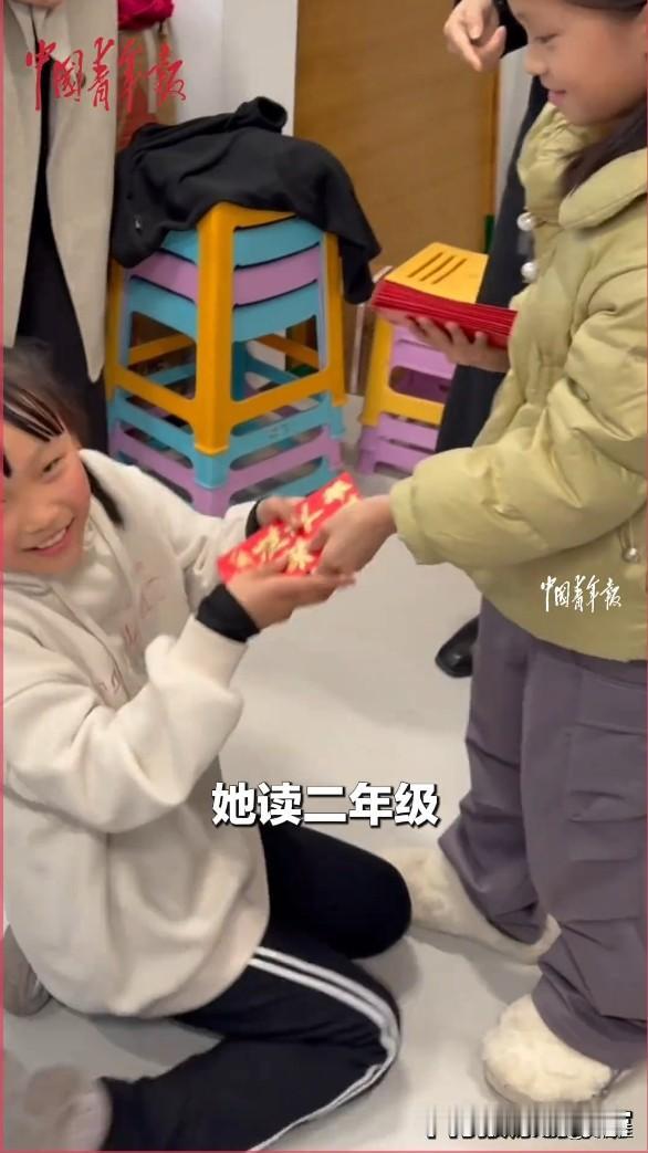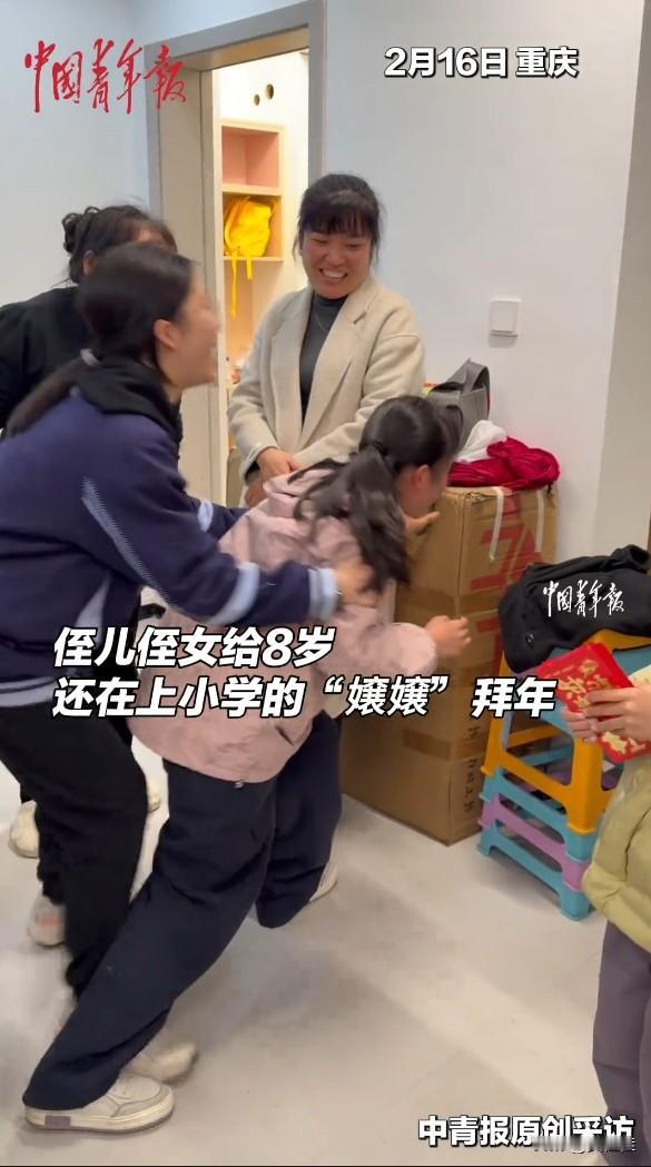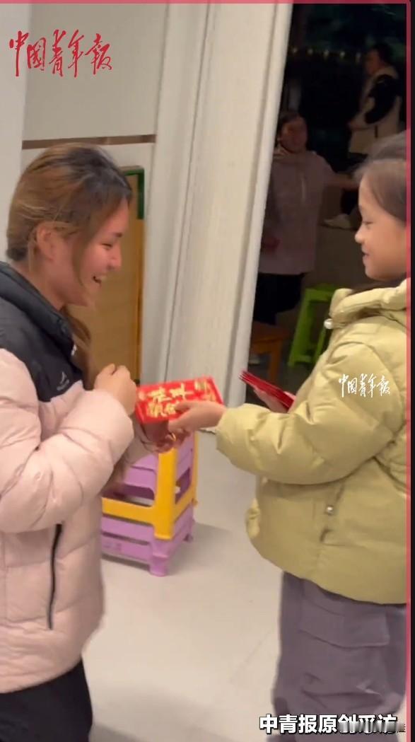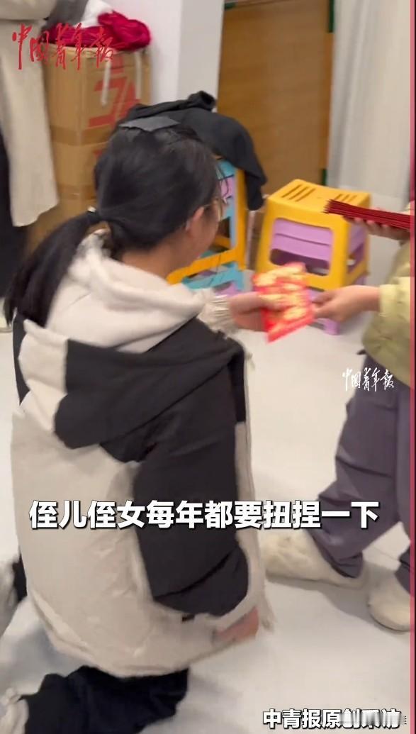 年纪小辈分却极大!8岁的“小嬢嬢”手里捧着厚厚一沓红包,静静等着侄女侄儿们磕头拜年。起初晚辈们都扭扭捏捏的,可到最后,一个个都乖乖磕头领红包,拿到红包后,脸上的笑容一个比一个灿烂。 刚开始,小辈分的孩子们怎么都不肯跪,大人们在旁边连拉带劝都没用。再看这位小嬢嬢,脸上半点笑容都没有,表情格外严肃。她抿着嘴,眼神直直地看向一旁,模样淡定极了,完全看不出是个8岁的孩子,反倒像位正儿八经的长辈,正等着晚辈们前来行礼,气场十足。 孩子们扭捏了半天,终究没抵挡住红包的诱惑,纷纷上前磕头。后来大学生晚辈们一到,更是干脆,毫无犹豫地就跪了下去了。看来大学生们懂得钱比较重要……