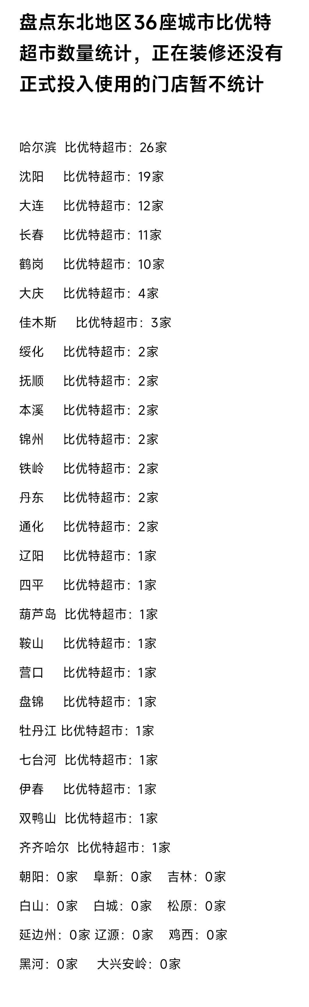 鹤岗不大,创造神话。真没想到我从鹤岗走出来的比优特超市现如今已经逐步打开了沈阳、大连、长春、哈尔滨的消费市场,在东北地区的门店数量已经突破了100家。 见此情景不禁感慨鹤岗在打造餐饮品牌方面确实是很有实力。不仅让优特超市红遍了东北三省,更难得的是同样从鹤岗走出来的喜家德水饺也是遍及全国各地,见此情景不禁感慨鹤岗确实很有实力。