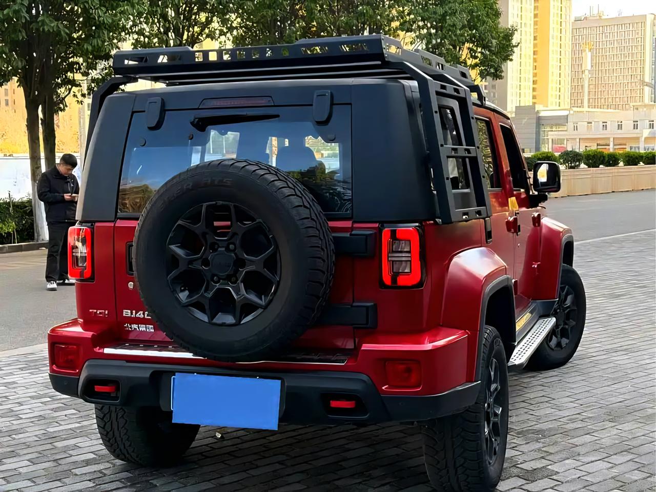 这是一台红色bj40刀锋英雄柴油重装版。其实是很多改装车厂后期改装的产品。 Bj40的越野能力,我觉得是远远的超过北汽宣传的一些能力的。其实北汽在宣传这台车的时候稍微有点保守了,因为这台车很多玩法都是车友们自行开发出来的。所以这台车在这一代车型设计的非常成功,因此推出了荣耀版。荣耀版在国内的销量也是比较高的,虽然全新的40已经推出了,但是荣耀版还是有它的市场。柴油荣耀版你们觉得如何?!【来自懂车帝车友圈】