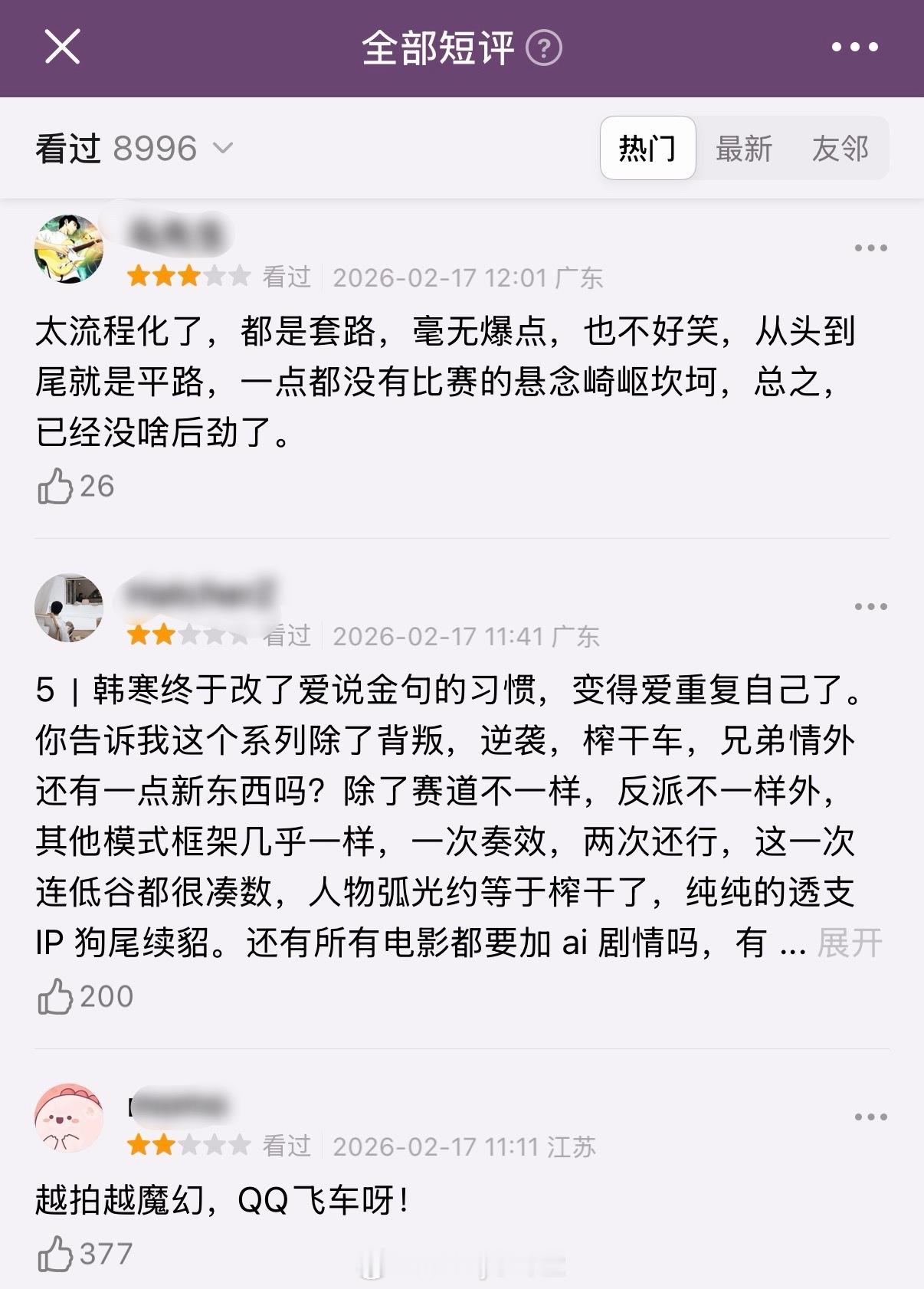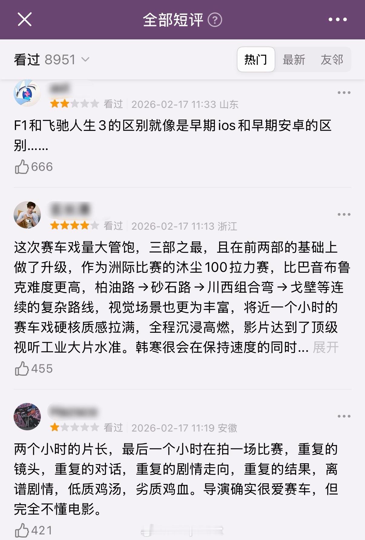飞驰人生3上映后的瓣人评价:毫无过渡,连前两部都不如,韩寒懂赛车但是不懂电影。