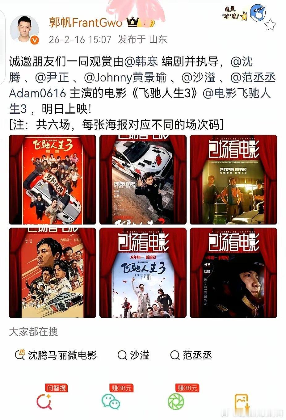 郭帆给吴京的新片《镖人》包了整整九场,这事儿可不只是朋友捧场那么简单。春节档电影打得头破血流,郭帆的社交账号却成了圈内人情关系的晴雨表。他怎么支持,支持谁,门道都在里头。对吴京的《镖人》,是最高级别的力挺。当年吴京零片酬还带资进组《流浪地球》,这份情,郭帆现在连本带利地还。对沈腾的《飞驰人生3》,是“必须支持”。因为沈腾是《流浪地球3》的主演,这是工作伙伴间的资源互换,面子必须给足。至于科幻片《星河入梦》,就是同行间的友情支持,点到为止。别看导演们平时客客气气,真到了资源倾斜的时候,谁是“自己人”,谁是“合作方”,一清二楚。成年人的世界,支持从来都不是免费的,而是价值和人情的精准计算。