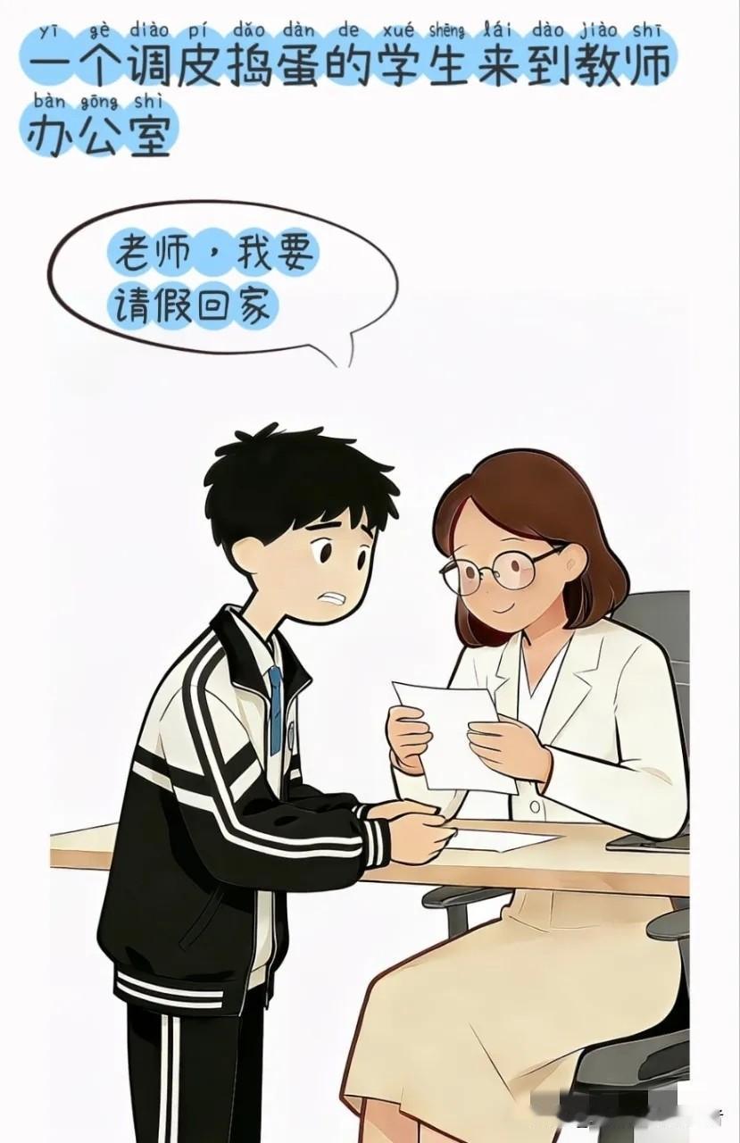 你们平常看什么漫画逗你笑:学生:老师,我要请假。老师:不可以,你以为学校是你家呀,想来就来想走就走。学生:大扫除的时候,你说学校是我家,卫生靠大家搞笑漫画