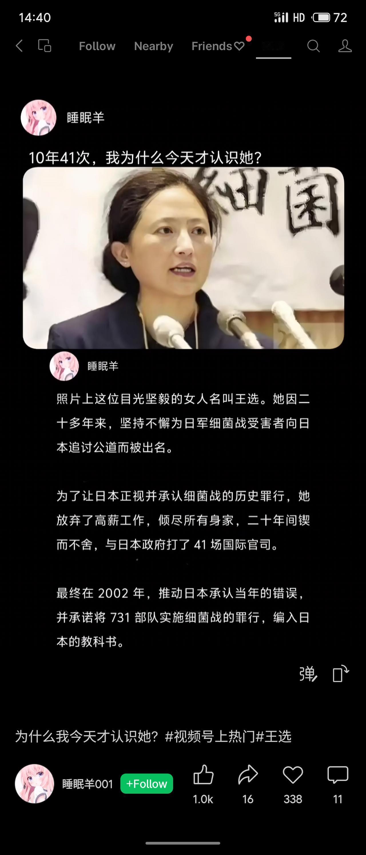 王选20多年来放弃高薪,倾尽家财为日军细菌战受害者向日本讨公道。历经41次诉讼,2002年终使日本承认罪行并编入教科书。网友感叹:为何今天才认识她?
