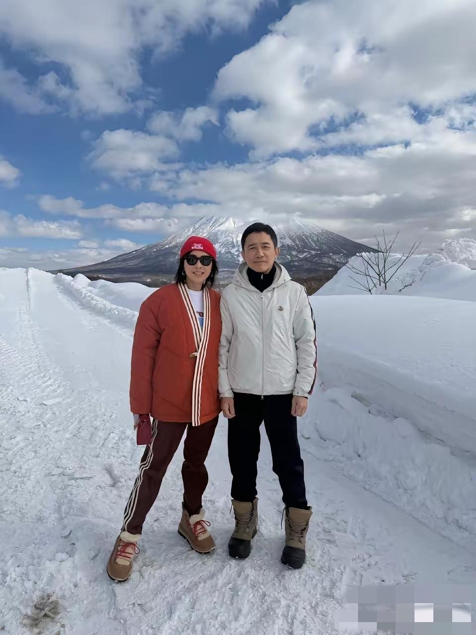 刘嘉玲与梁朝伟马年春节在日本度假,夫妻俩以富士山为背景甜蜜合影。60岁的刘嘉玲一身红色装扮喜气十足,梁朝伟则穿白色羽绒服笑容灿烂。无子女的二人享受悠闲滑雪假期,潇洒自在的生活令人羡慕。