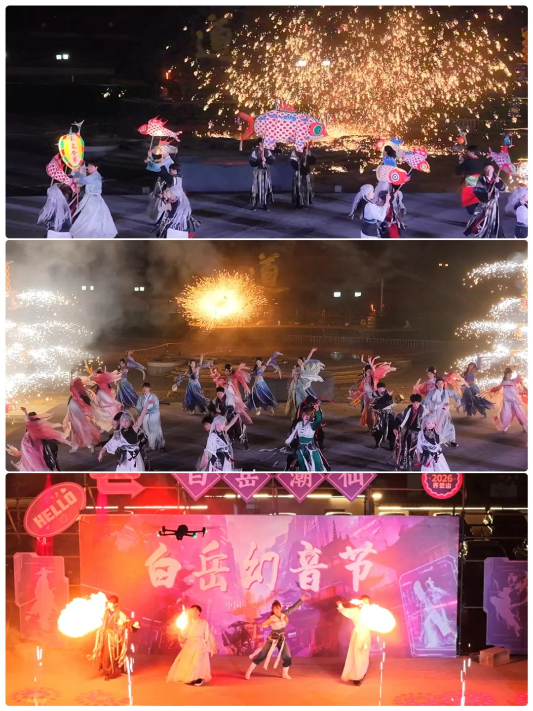 ✅夜晚沉浸式看:徽州鱼灯巡游+打铁花+火壶表演