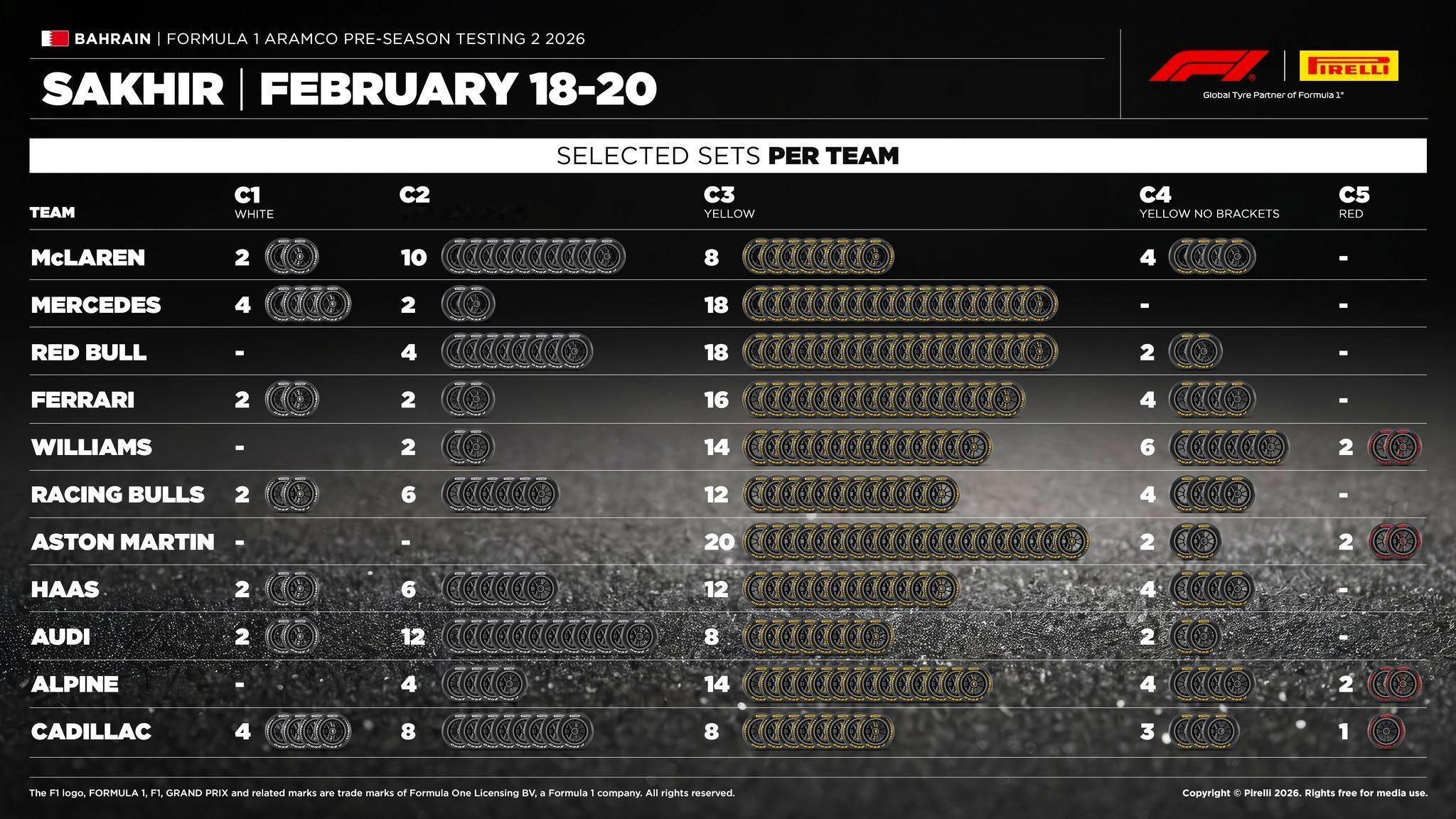 2026赛季F1巴林🇧🇭第二轮季前测试~各支车队轮胎选择方面👀F1赛车2026F1季前测试