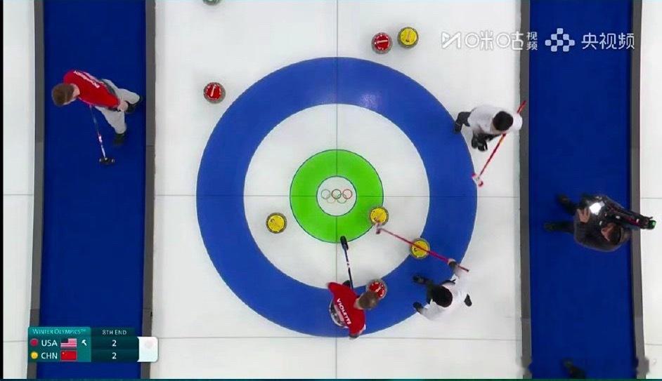 第八局美国队最后一壶失误中国队一下偷了3分局面迅速打开(前八局2-2 太焦灼了)全民聊冬奥