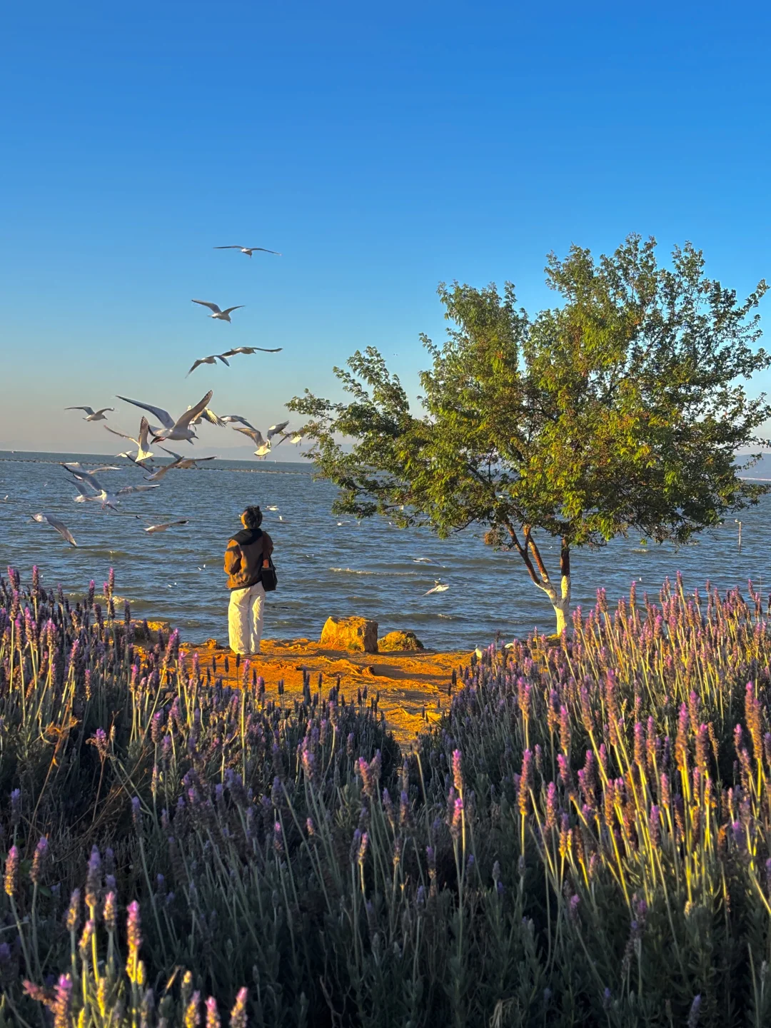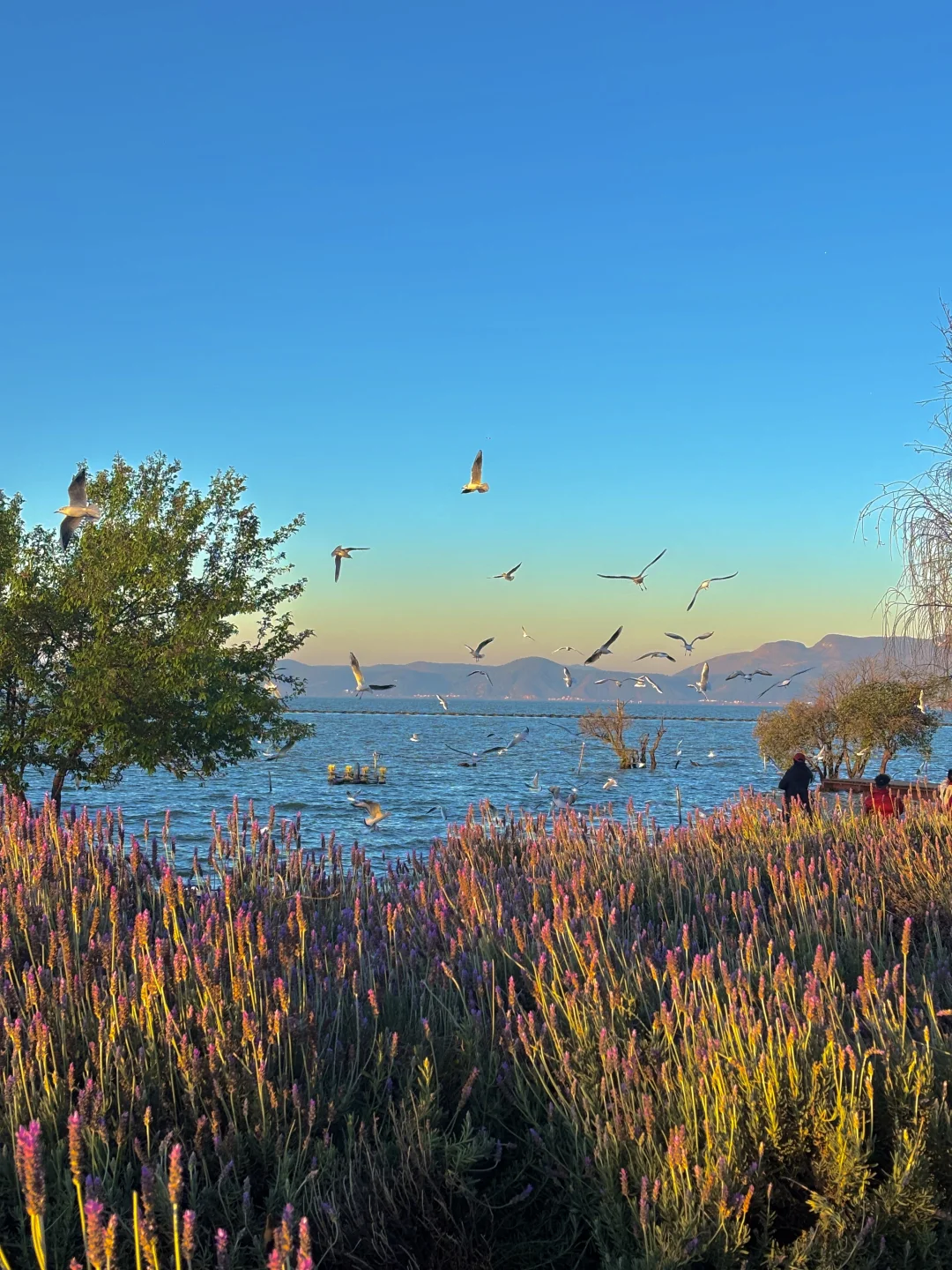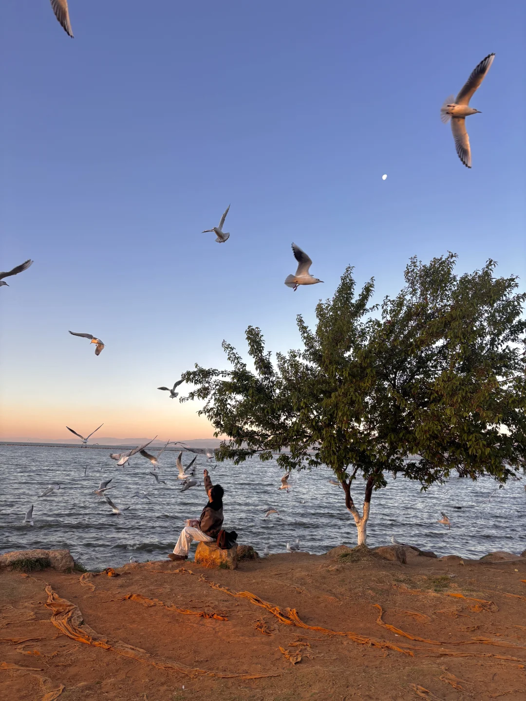 一个人坐在滇池边,欣赏落日与海鸥相伴 这种景色真的会让我记一辈子~ - 如果你也有机会来到昆明,我推荐你来这,人少景美,会让你更好体验到昆明作为花城的浪漫。 - 📍地址:云南昆明王官湿地公园 🎫:免费 - 👇🏻重点 ❶早上7点半→8点半是最佳欣赏时间,人少海鸥多。当然日落也非常好看,人相对会多一点点,不过人流还好。 ❷记得自己带面包,哪里卖的还是有些贵。 ❸旁边就是斗南花卉市场,可以去那里买点鲜花来拍照会更美 -
