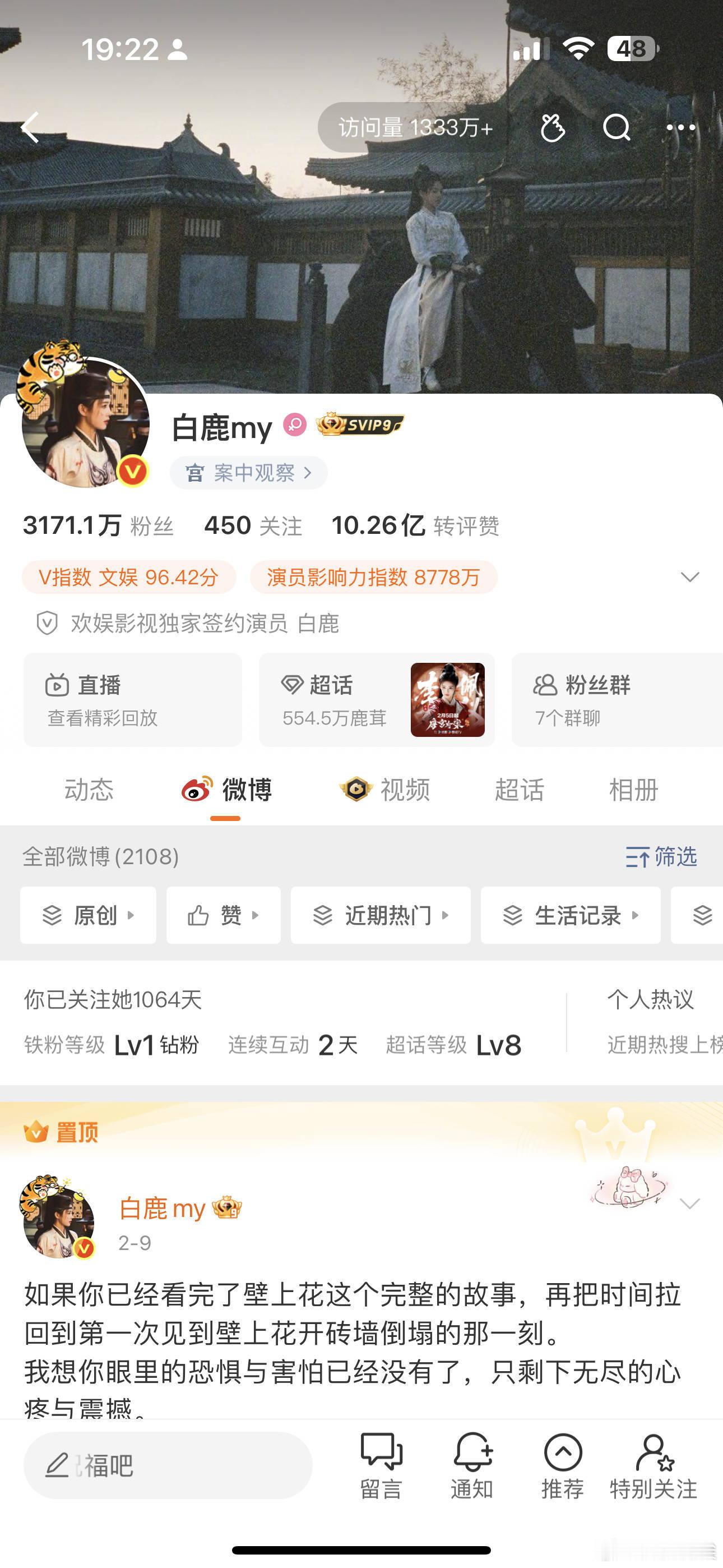 白鹿主页访问量突破1300万!别人几百万就是春晚出圈,白鹿这一千三百万是全民出圈!唐宫奇案今天更新了,好好看!
