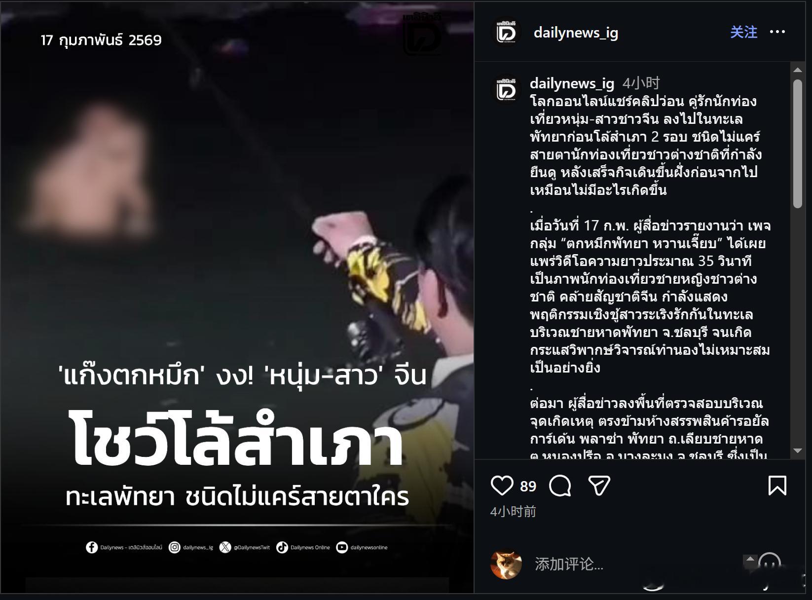 泰国芭堤雅海滩再曝不雅行为 疑似中国情侣当众裸泳引争议ai热点共创计划海外新鲜事
