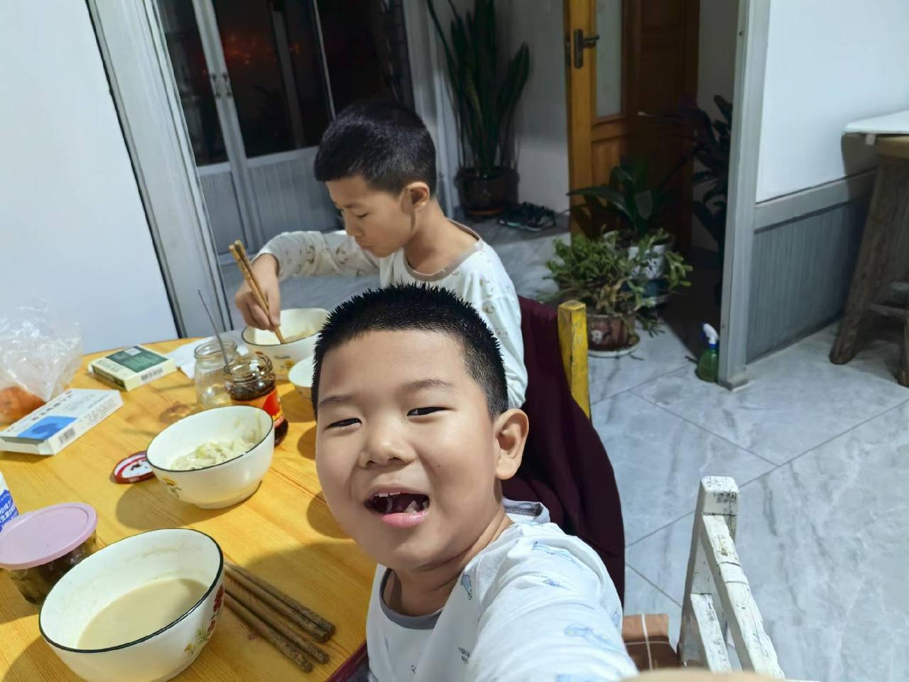 温馨家庭时光,两兄弟共享晚餐的快乐瞬间🥣👨👦👦