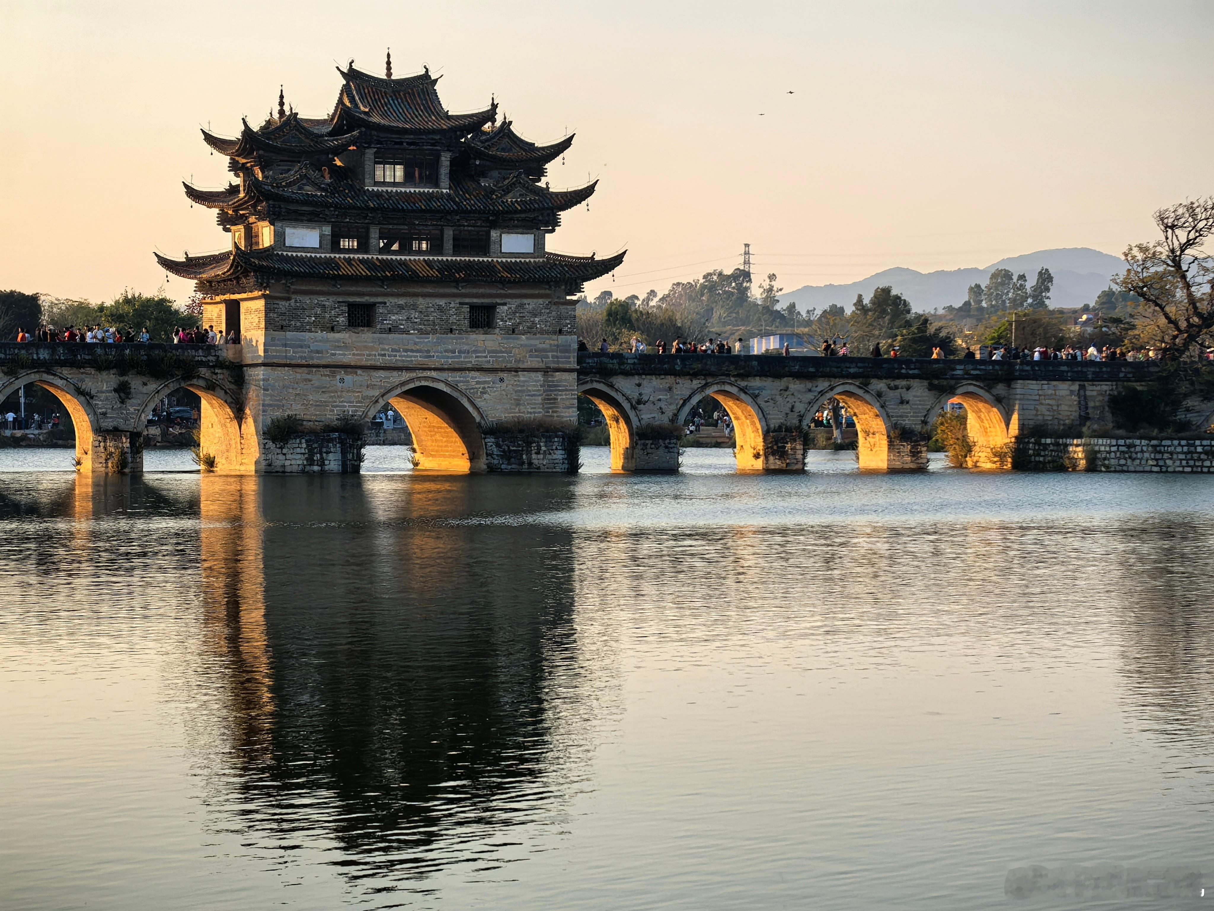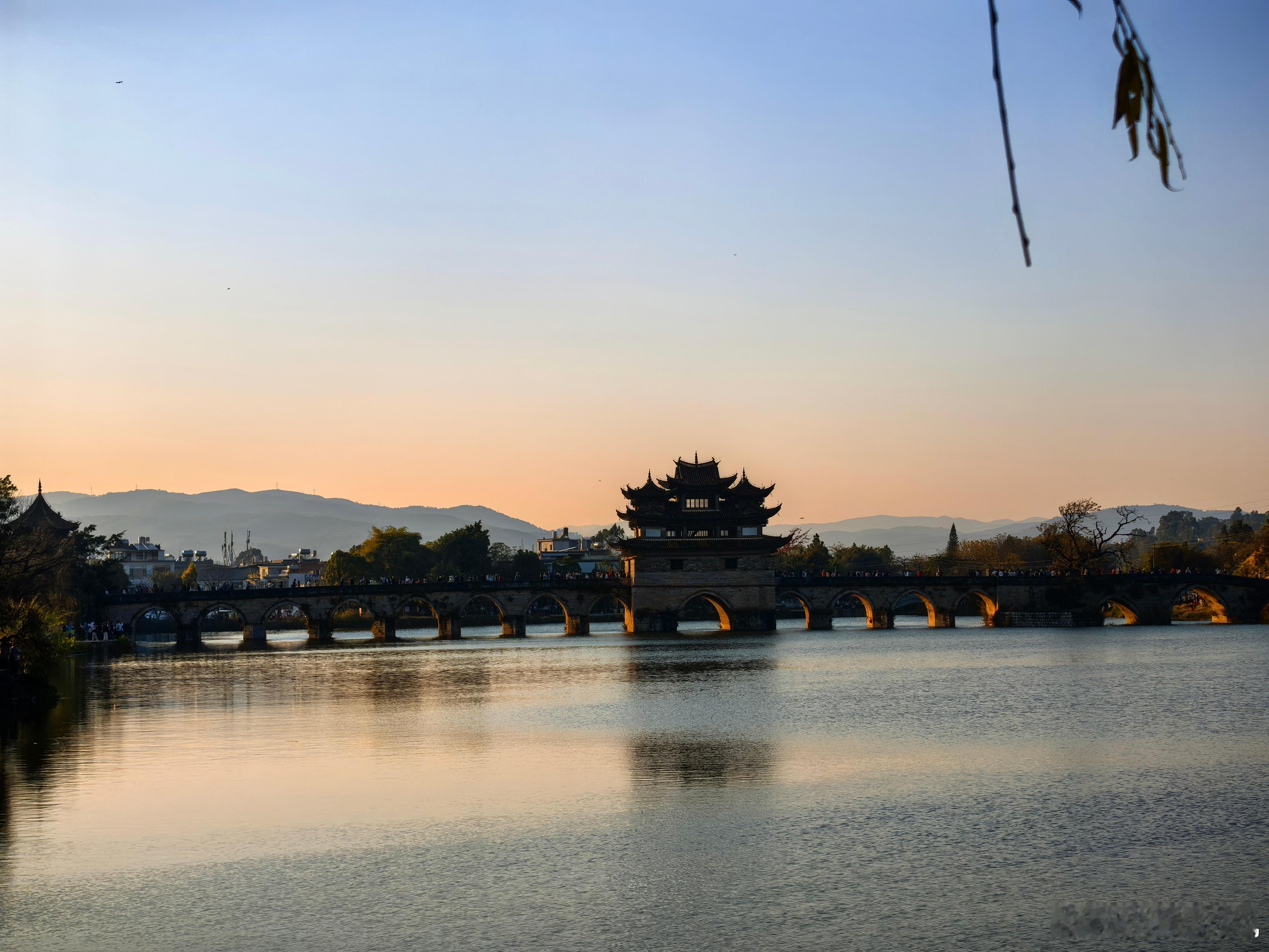 十七孔桥日落很赞。近天黑,打车不易,加了价,司机一路堵过来接。回城已经八点多。点好菜,再给司机发了个红包。 红河·建水古城