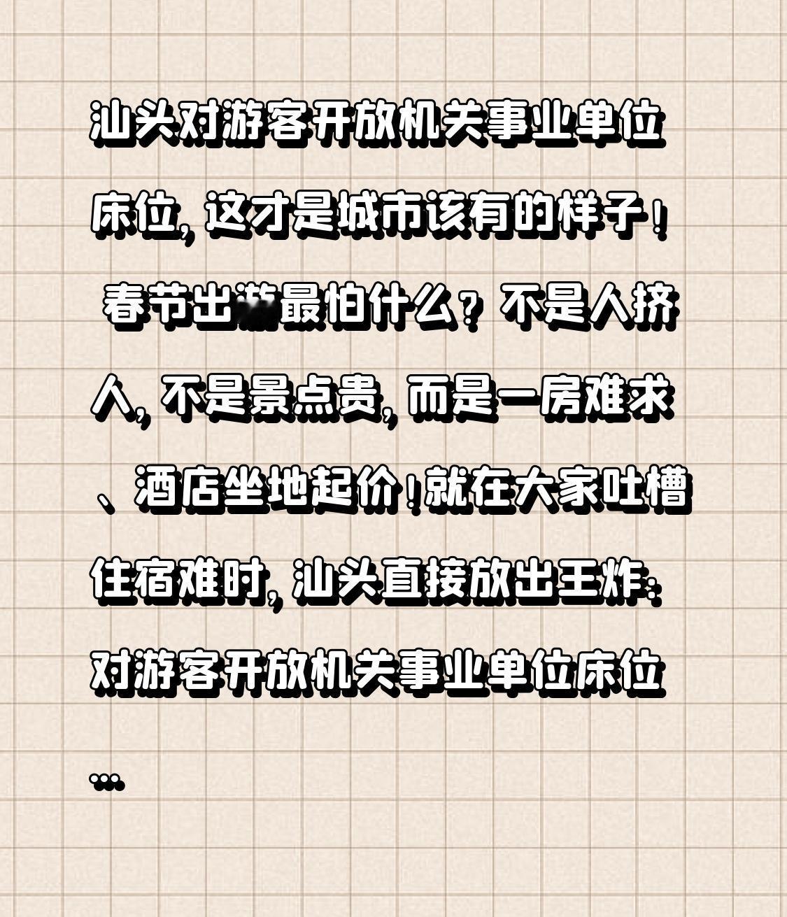 汕头对游客开放机关事业单位床位,这才是城市该有的样子! 春节出游最怕什么?不