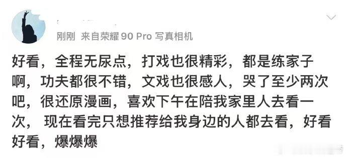 镖人第一波反馈 初一上午就打卡《镖人》,袁和平导演功力深厚,既保留硬核武侠,影像