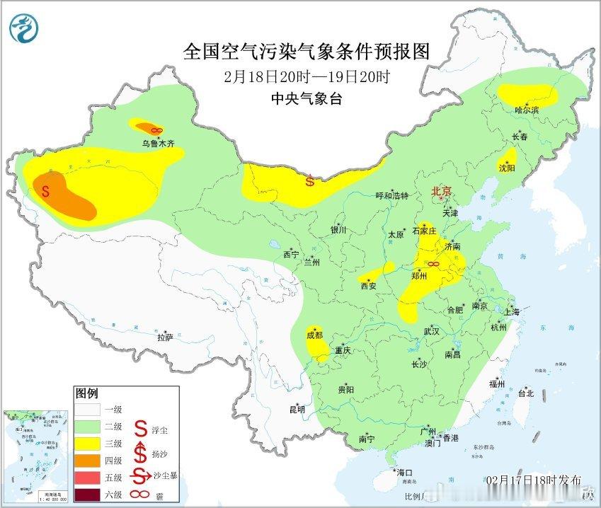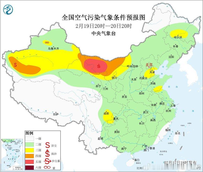 【雾 霾 沙尘】从空气质量看,今晚中东部多地,空气质量大多较好,燃放烟花导致的污染,来得快去得也快。未来重点关注雾和沙尘。今晚到明天上午,河南安徽湖北江西湖南贵州重庆等地,可能出现大雾。另外20日蒙古有气旋发展,20-21日我国北方地区有可能出现较大范围沙尘。后期继续关注。