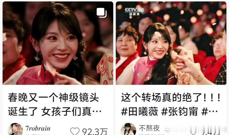 田曦薇春晚舞台大出圈,热评好会讲,一下子就get到了这个视频的美