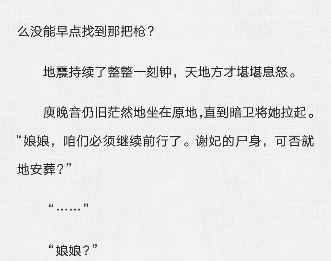 不过剧里女二下线拍出来淡淡的,小说是“大地在这一秒开始震动”,比较震撼