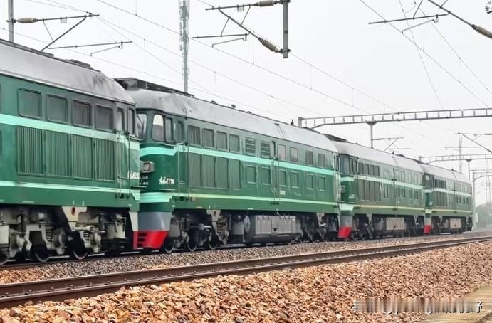 上局沪段复兴内5C型内燃机车牵引5台东风4B型内燃机车组成的机车大列前往金卫西站,这是否也意味着东风4型机车在上海地区也要绝迹了呢?东风4B内燃机车在上海基本上也退出了干线铁路运输,随着机车的更新换代,如今这批机车可能连在支线做小运转的用途也要被取代了呢。
