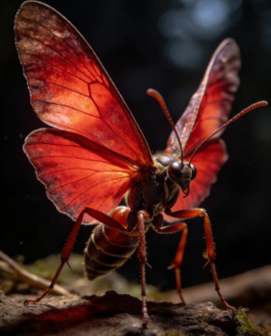 品读《山海经》496——《海内北经》大蜂,朱蛾 原文: 大蜂,其状如螽(zhong)。朱蛾,其状如蛾。 解析: 有一种大蜂,长得像螽斯。 螽斯身体是绿色或者褐色的,样子像蚂蚱,但是比蚂蚱大3倍左右。 大蜂又比螽斯的身体大3倍。 虽然称为蜂,但是大蜂是无毒的。 有一种朱蛾,长得像蚍蜉。 蚍蜉就是现在我们说的蚂蚁,但是朱蛾比蚂蚁体型大,还比蚂蚁多长了一对蛾子一样的红色翅膀。 天南地北大拜年《山海经》解析大蜂螽斯AI 朱蛾秘影
