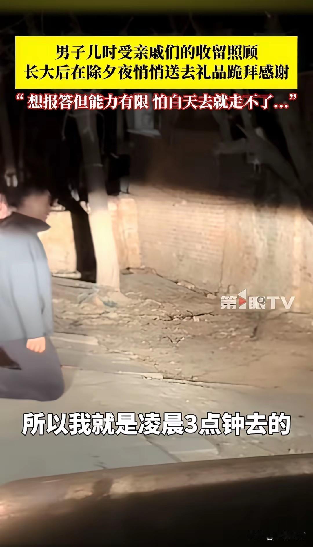 鼻子发酸!除夕凌晨3点,家家户户都在暖屋里守岁团圆,他却顶着寒冬的冷风,拎着礼品挨家挨户走,只为给当年收留自己的亲戚,磕一个头,谢一句恩。 10岁父亲离世,从没见过母亲,是亲戚们东家一口饭、西家一口汤,把无依无靠的他拉扯长大。这份救命的恩情,他在心里记了几十年,从来没敢忘。 最戳人的,从来不是他郑重跪拜的动作,是他藏在凌晨里的那份小心翼翼的体面。 他不是不想白天光明正大上门拜年,是创业失败、还没成家,怕自己混得不尽人意,上门了亲戚非要留他过年,反倒给恩人添了麻烦。所以才选在万籁俱寂的凌晨,悄悄送上礼品,深深磕下头,不打扰、不声张,只把满腔的感恩,安安稳稳送到。 看多了过年送礼时的排场攀比、人情算计,才更懂这份纯粹的感恩有多难得。 真正的知恩图报,从来不是功成名就后的重金回馈,是落难时的一口热饭,记了一辈子;是哪怕自己身处低谷,也从来没忘了拉过自己一把的人。 这份刻在骨子里的善良,才是新年里最暖的风景。你们有没有过被人伸手拉一把,记了很多年的经历?知恩图报
