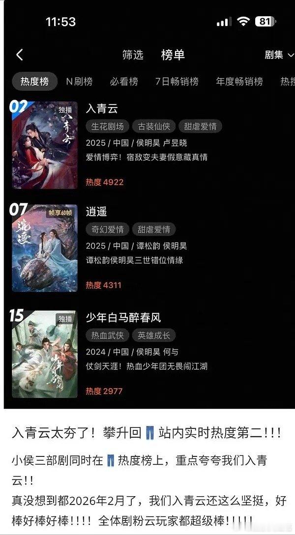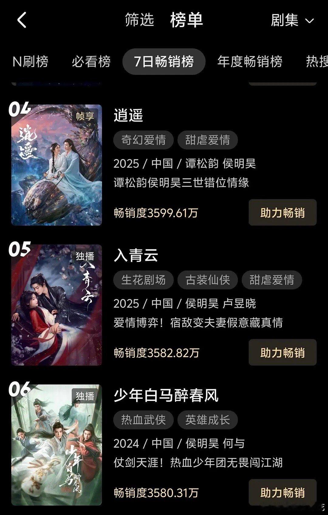 发现侯明昊每次优酷播剧一家人都很整齐啊,热度&7日拉新,隔了两年的剧一样上榜!明昊一番扛剧能力持续上升中