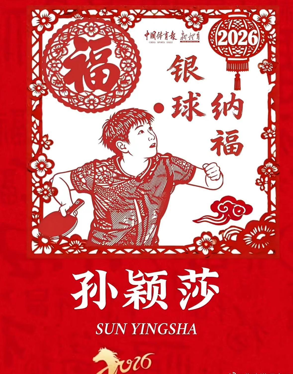 恭喜孙颖莎登上中国奥林匹克限定新春荣耀窗花剪纸~唯一入选的乒乓球运动员。孙颖莎