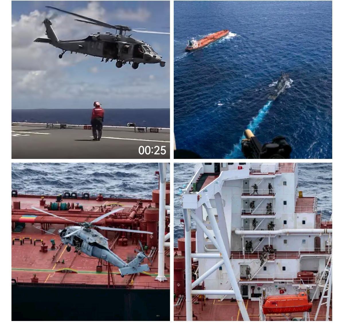 昨天下午,美军在印度尼西亚以南的印度洋上,抓扣了中国上海未来船舶管理有限公司(Shanghai Future Ship Management Co Ltd)管理和运营、中国香港公司Volans Delta Ltd所有的巴拿马籍油轮Veronica III号。委美冲突 从美国国防部公布的画面来看,美军直升机是从米格尔·基思号(ESB-5)远征前进基地舰上起飞的。 这艘油轮也是运载委内瑞拉原油前往亚洲的船只之一。这已经是上周以来美军在印度洋的第二次类似行动。上周(2月9日),他们扣押了另一艘名为Aquila II的油轮,也是从加勒比海追踪而来。 这是美军最近扣押的第九艘类似船只。