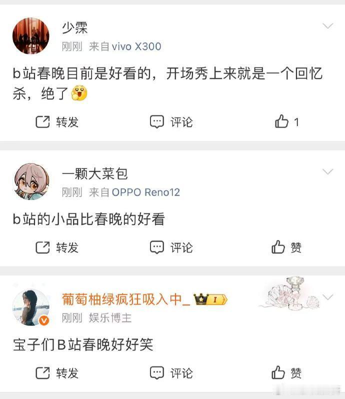 B站春晚比昨晚好笑 到现在都还沉浸在B站春晚所带来的欢乐当中,里面的笑点可太密集了,就喜欢看这种令人放松的节目B站春晚 好看B站春晚