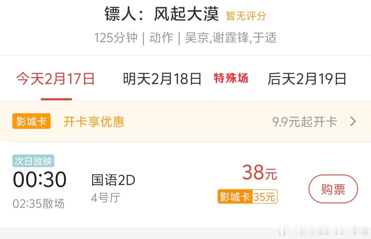 镖人 排片镖人的排片属实有点阴间了啊~这个点咋去看啊不睡觉的嘛!其实类似这种情况已经不少见了,就看镖人凭借自身过硬的武侠质量能否突破排片重围了!