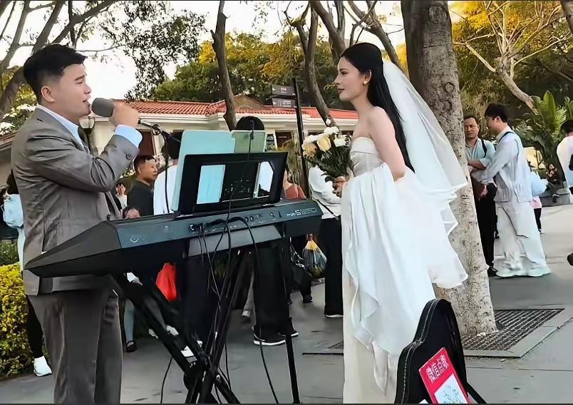 “厦门首富”林熙公子现场求婚,现场人山人海,特别热闹。林熙公子今天穿了一身西装,他老婆穿着洁白的婚纱,两个人就在厦门街边,现场求婚献歌。