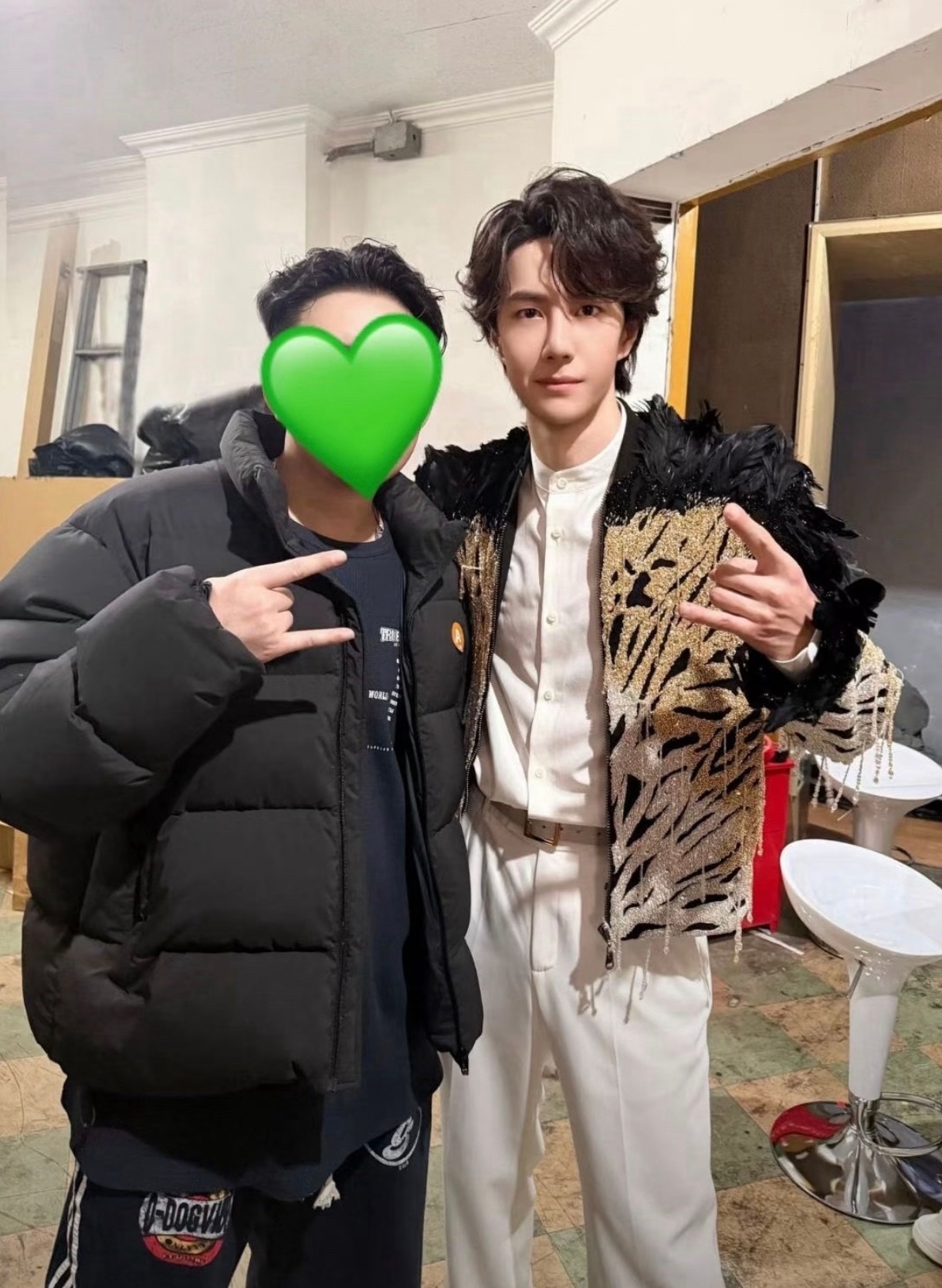 张天爱跟素人合影,胯真的好宽,大宅院似的