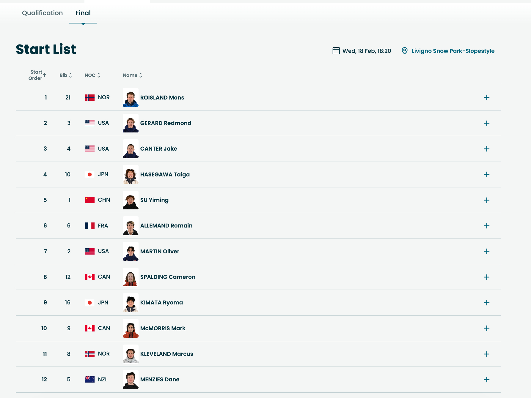 ❄️由于天气原因影响赛程安排,原定于北京时间2月18日19:30进行的单板滑雪男子坡面障碍技巧决赛,时间提前至2月18日18:20分开始,中国选手将在第五位登场。
