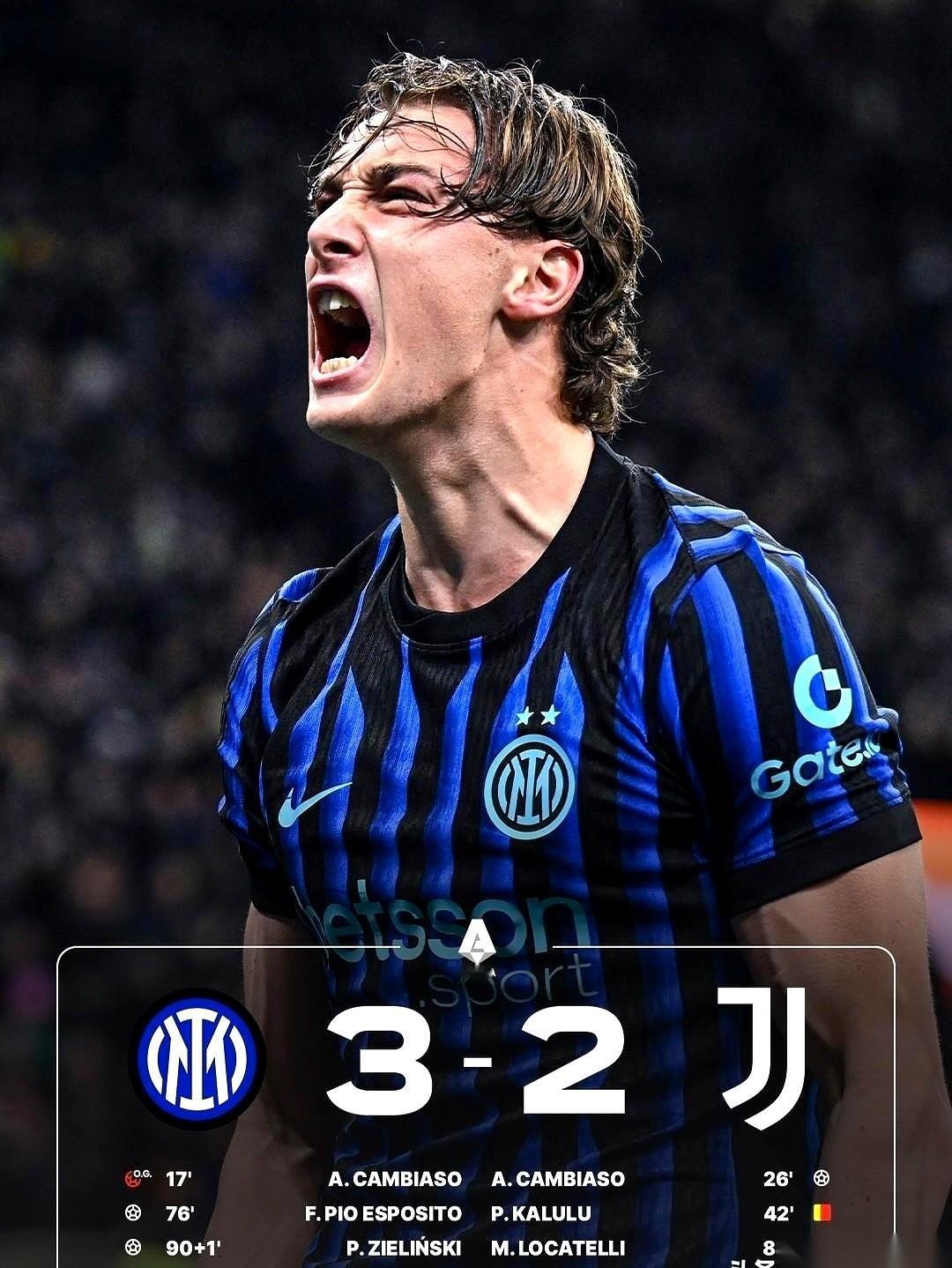 我发誓,第九十分钟的时候,我已经准备关电视睡觉了。 心如死灰。 真的,就那种感觉,被领先,扳平,再领先,再被扳平……我那颗心啊,就跟过山车一样,刚把你举到天花板,咣一下,又给你摔回地下室。两次!两次都这样! 老对手了,尤文,那种韧劲儿谁不知道?我脑子里已经开始演练明天怎么跟朋友解释这场“虽平犹荣”的比赛了。 然后,就那一秒。 比塞克从右边把球传过来,泽林斯基,就在那个熟悉的大禁区弧顶……他调整了一下,我心里还咯噔一下:“坏了,要被断了。” 下一秒,就是一道闪电。 左脚,抽射,世界清净了。 球就那么钻进去了。干净,利落,不讲一丁点道理。 那一刻我直接从沙发上弹了起来,真的,就是那种压抑了太久太久的情绪,瞬间炸开。什么强强对话赢不了球的魔咒,什么700多天没赢过的尴尬记录,全都在这一脚之后烟消云散。 这哪是3分啊。 这是把憋了两年多的那口气,狠狠地吐了出来! 爽。 太爽了。 谢谢你们,真的。这个年,能过踏实了。💙🖤