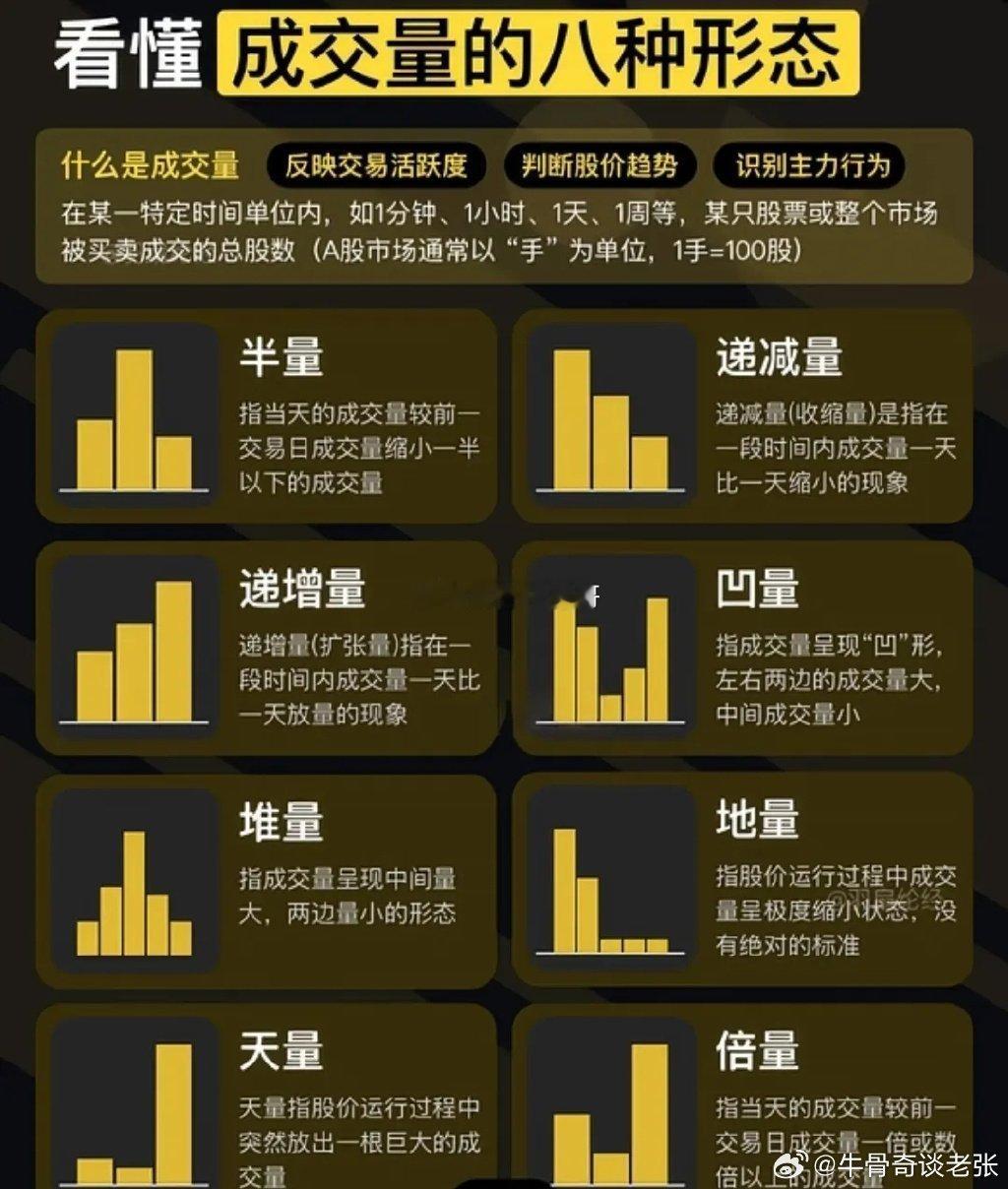 📊看懂成交量的八种形态,就掌握了判断市场情绪的密码。从倍量突增到地量缩量,从堆量蓄势到凹量反转,每一种形态都是资金留下的痕迹。学会读懂这些信号,就能更精准地捕捉股价趋势,识破主力意图,让你的交易决策更有依据。