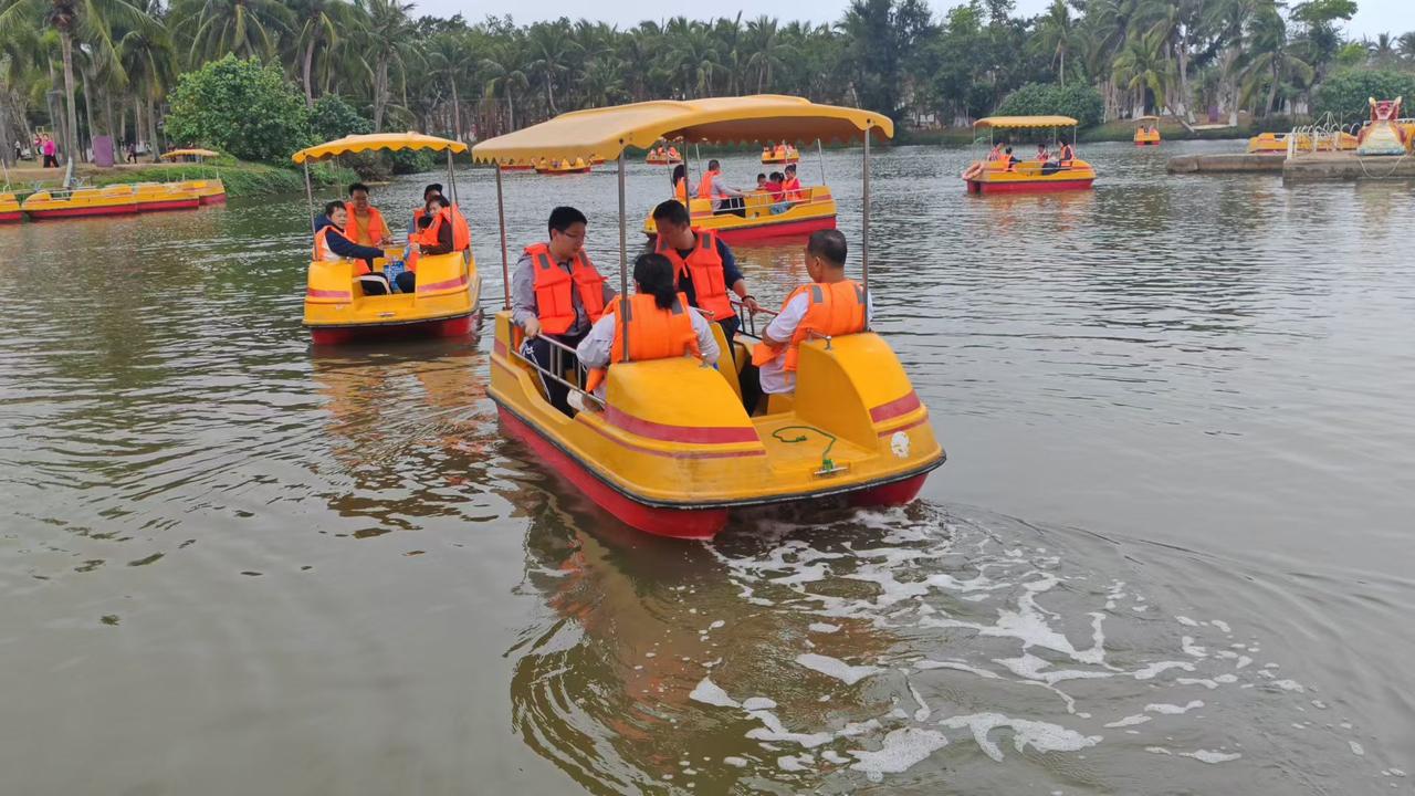 晒图笔记大赛橘色小船载着笑语,在水面犁出碎银似的浪,椰林也浸着夏风的温柔,把日子过成了浮在水上的甜。