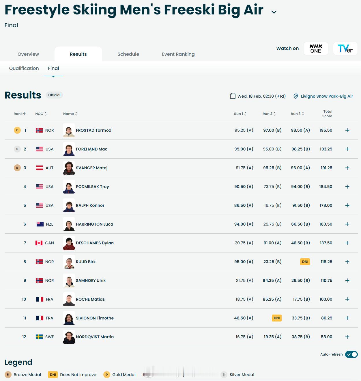 【冬奥17日金牌战况】冬奥会中国速滑男团铜牌2月17日,冬奥会第11个比赛日结束。原定的7枚金牌产生6枚(单板滑雪女子坡面障碍技巧因天气原因改至18日),挪威再夺两金,德国包揽男子双人雪车金银铜牌,中国队首次获得速滑男子团体追逐赛奖牌。详细如下:雪车男子双人:金牌:洛克纳/弗雷施豪尔(德国)银牌:弗雷德里奇/舒勒(德国)铜牌:阿莫尔/沙勒(德国)中国:孙楷智/安泰16、李纯键/叶杰龙17自由式滑雪男子大跳台:金牌:弗罗斯塔德(挪威)银牌:福尔汉德(美国)铜牌:斯万瑟(奥地利)速滑女子团体追逐赛:金牌:加拿大银牌:荷兰铜牌:日本中国:7速滑男子团体追逐赛:金牌:意大利银牌:美国铜牌:中国(刘瀚彬/吴宇/李文淏/宁忠岩)冬季两项男子4x7.5公里接力:金牌:法国银牌:挪威铜牌:瑞典北欧两项个人大跳台/10公里:金牌:奥夫特布罗(挪威)银牌:拉姆帕特(奥地利)铜牌:赫罗拉(芬兰)中国:赵嘉文28、赵子贺34
