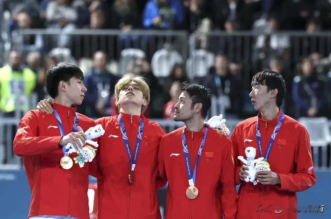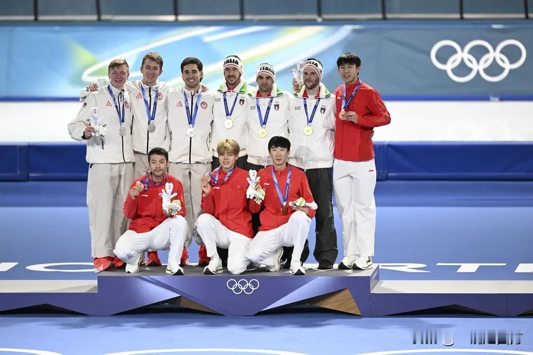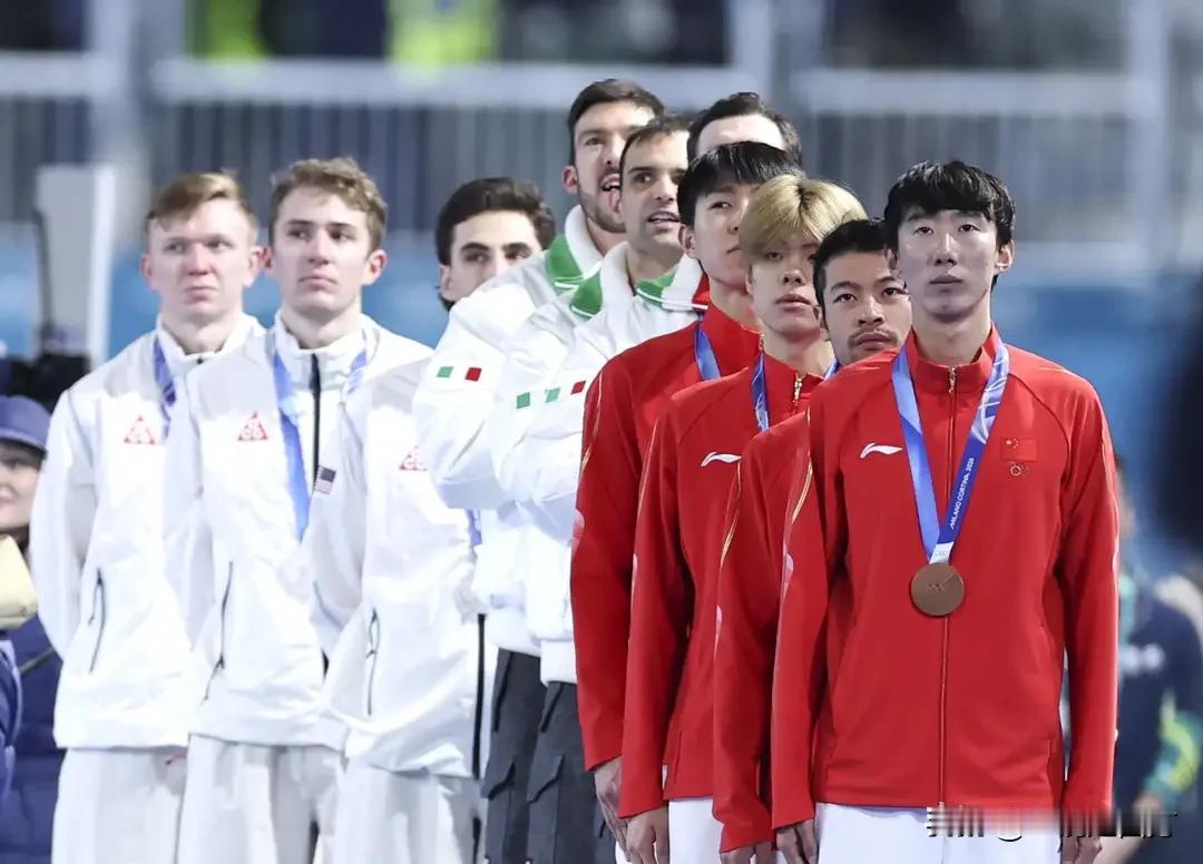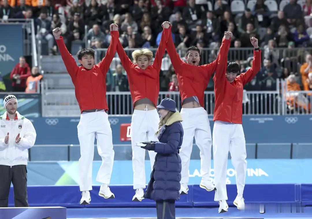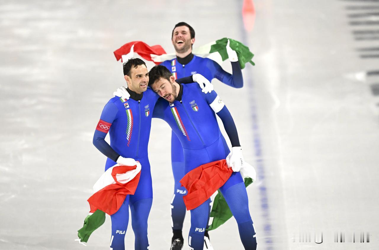 昨晚在米兰速度滑冰馆,中国队再获得一枚铜牌!在男子团体追逐赛1/4决赛爆冷淘汰了卫冕冠军挪威队打进四强的中国队,半决赛以超过7秒的较大差距负于实力强悍的美国队,随后在与同样实力强劲的荷兰队的季军战中,三位小伙子刘瀚彬、吴宇、李文淏拼尽全力,最终以3分41秒38对3分41秒47惊险获胜,仅领先0.09秒,大概只有一个冰刀刃的距离,作为接力成员之一的宁忠岩也在本届冬奥会第二次登上领奖台。东道主意大利队在冠亚军决赛中,以3分39秒20对3分43秒71的明显优势夺得该项目金牌。