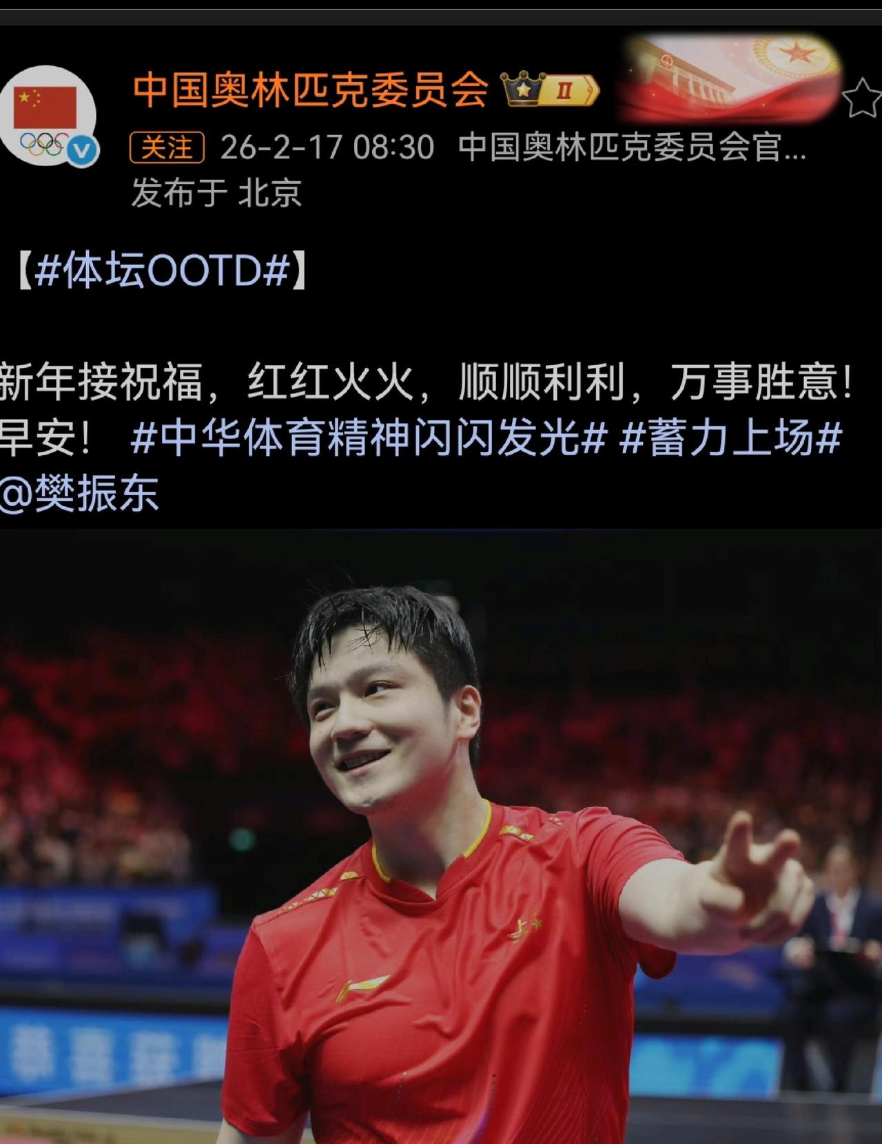 几对祝福大字,全是对东哥的爱意,不止敬佩,好有看到自己孩子的感觉! 不论黑子或粉丝,一次次证明我们的偶像没有错,就应看到东的故事就是生活的典范,没有什么可争议的,质疑声更不应该在存在! 樊振东是我们的荣耀和自豪,无需畏惧,无需担心,红红火火,一年都是春天!