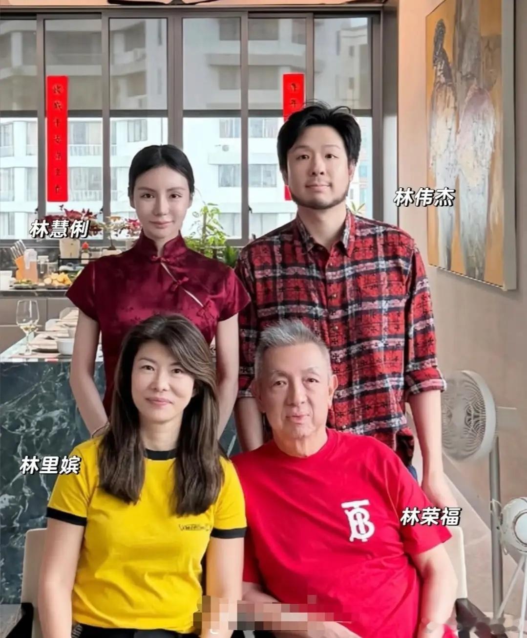 何猷君前女友一家新年合照,她穿酒红色旗袍,后妈坐她前面显年轻!