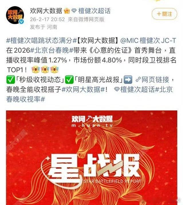 北京春晚收视率什么叫权威Proof首秀舞台收视率峰值1.27%市场份额4.80%