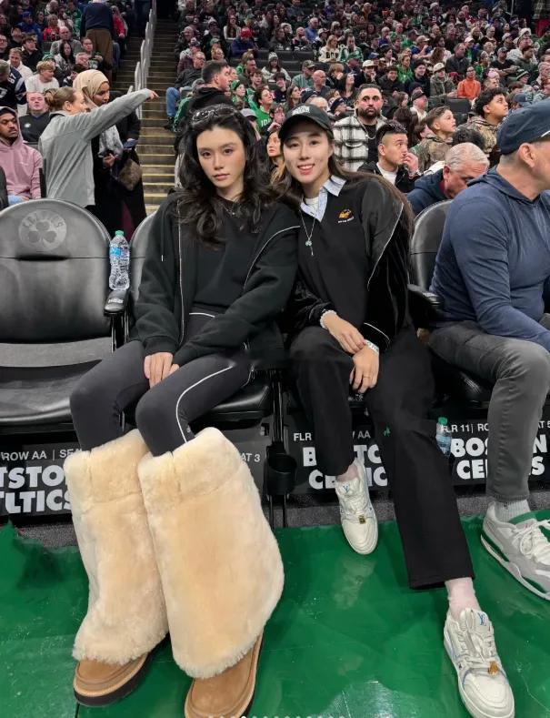 奚梦瑶新年第一天晒美照,和老公何猷君看NBA,穿着一身黑特别有气场,新年造型也是