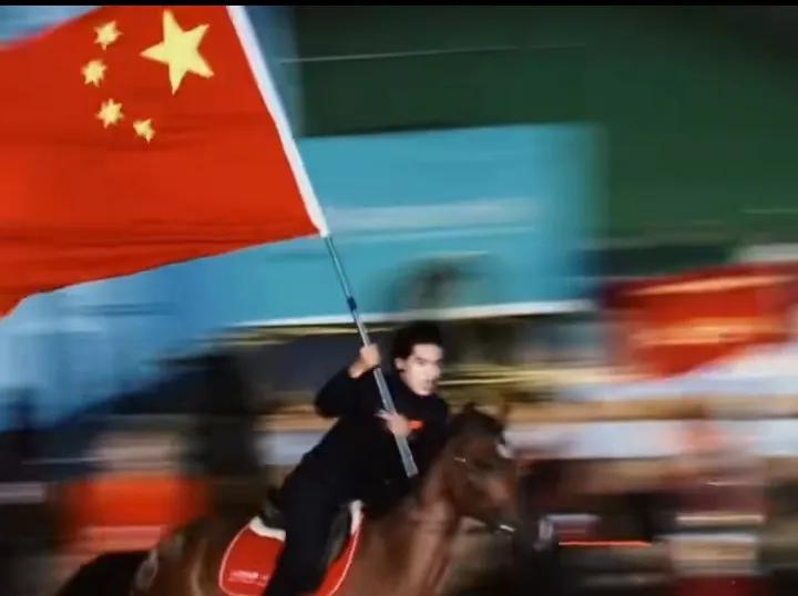 帅到失语!这才是内娱该有的阳刚之气!😎 鲜衣怒马少年郎,手持红旗威国扬。这一出场,直接让人看到了焦恩俊的影子。 在这个连路都走不稳、全靠特效凑的流量时代,有人敢把真马骑上舞台。这就叫专业,这就叫敬畏! 观众心里都有杆秤,谁是来糊弄事的,谁是真把看家本事亮出来的,大家跟明镜似的。 红旗、快马、少年,这画面里藏着的,是奔腾向上的中国精神,是所向披靡的中国力量! 唯一槽点:这身西装确实有点草率了! 仍是英俊少年 内娱绅士风度 民族风尚男范 中国风男子